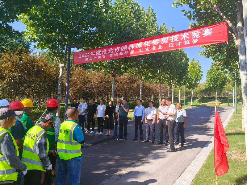 为提升园林绿化养护工作人员的绿化修剪技能及精细化养护水平,9月25日,市园林处在花山公园组织开展2024年度淮北市园林绿化修剪技术竞赛,来自市、县区(市高新区)、市工业艺术学校、市建投集团、中煤三建淮北公司等15家单位、48名园林绿化养护人员现场"比武”、大显身手,市住房城乡建设局党组成员、副局长张进书出席活动。