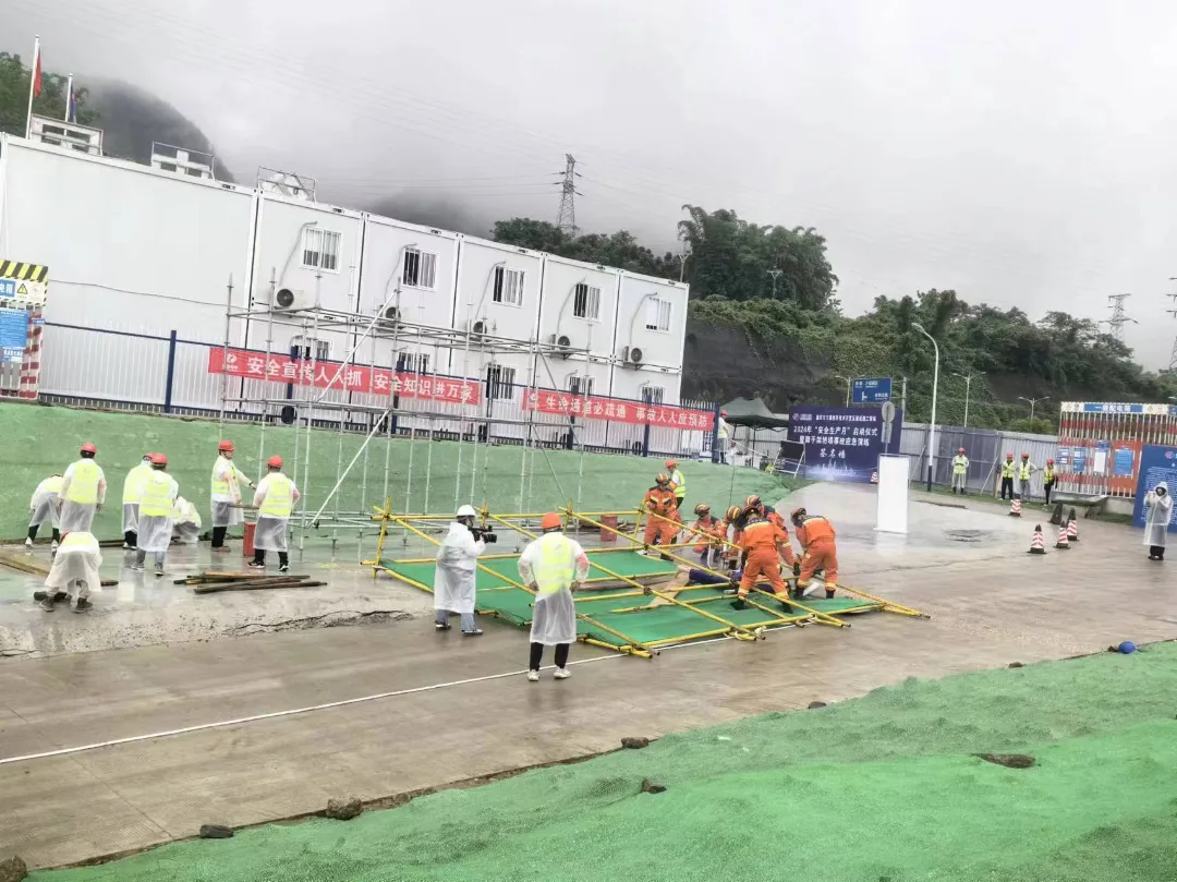 本次活动以"人人讲安全,个个会应急——畅通生命通道”为主题展开应急演练。此次演练模拟了施工现场脚手架意外坍塌危及施工人员生命安全的情况,并快速启动应急预案并向上级请求支援,各应急小组成员紧急集合,有序开展救援工作,完成演练。