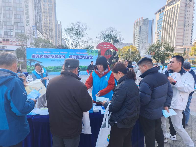 2025年3月22日是第三十三届"世界水日”,3月22-28日是第三十六届"中国水周”,今年的宣传主题是"推动水利高质量发展 保障我国水安全”。3月21日上午,市水务办工作人员来到天盈财富广场,参与市水利局举办的现场宣传活动,通过水法宣传咨询、宣传图版展览、宣传资料发放,赠送印有节水标语的口罩、扇子、环保袋等方式,向市民宣讲节水知识,进行《水法》、《水土保持法》、《节约用水条例》、《安徽省节约用水条例》等法规政策的宣传。