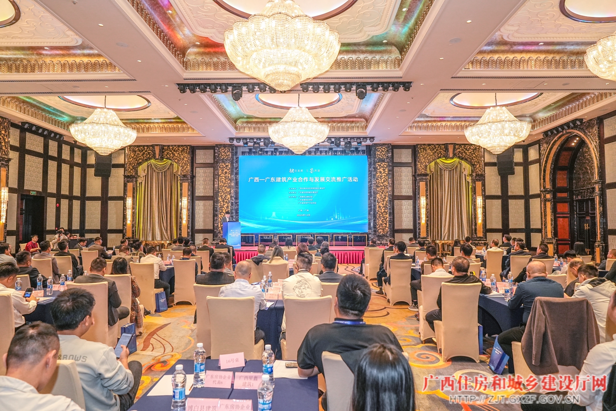 12月12日,广西—广东建筑产业合作与发展交流对接活动在广州市举行。来自两省区住房城乡建设行业主管部门、相关行业协会和企业代表约150人齐聚一堂,共商区域建筑产业合作大计,为两地企业开拓市场、抱团出海搭建“桥梁”,共同推动建筑业高质量发展。广东省住房和城乡建设厅一级巡视员周蔚,广西住房和城乡建设厅党组成员、副厅长崔磊出席活动并致辞。