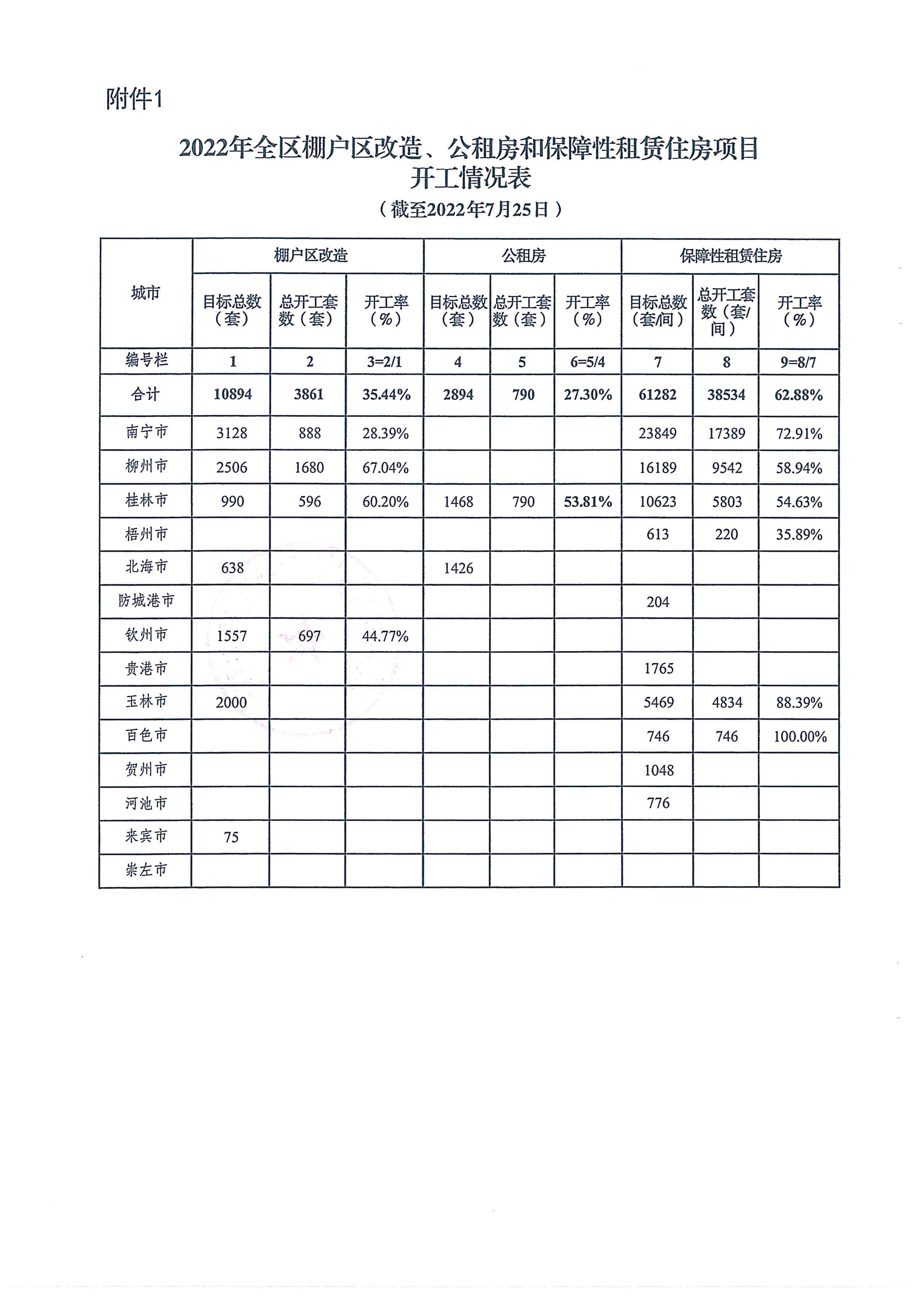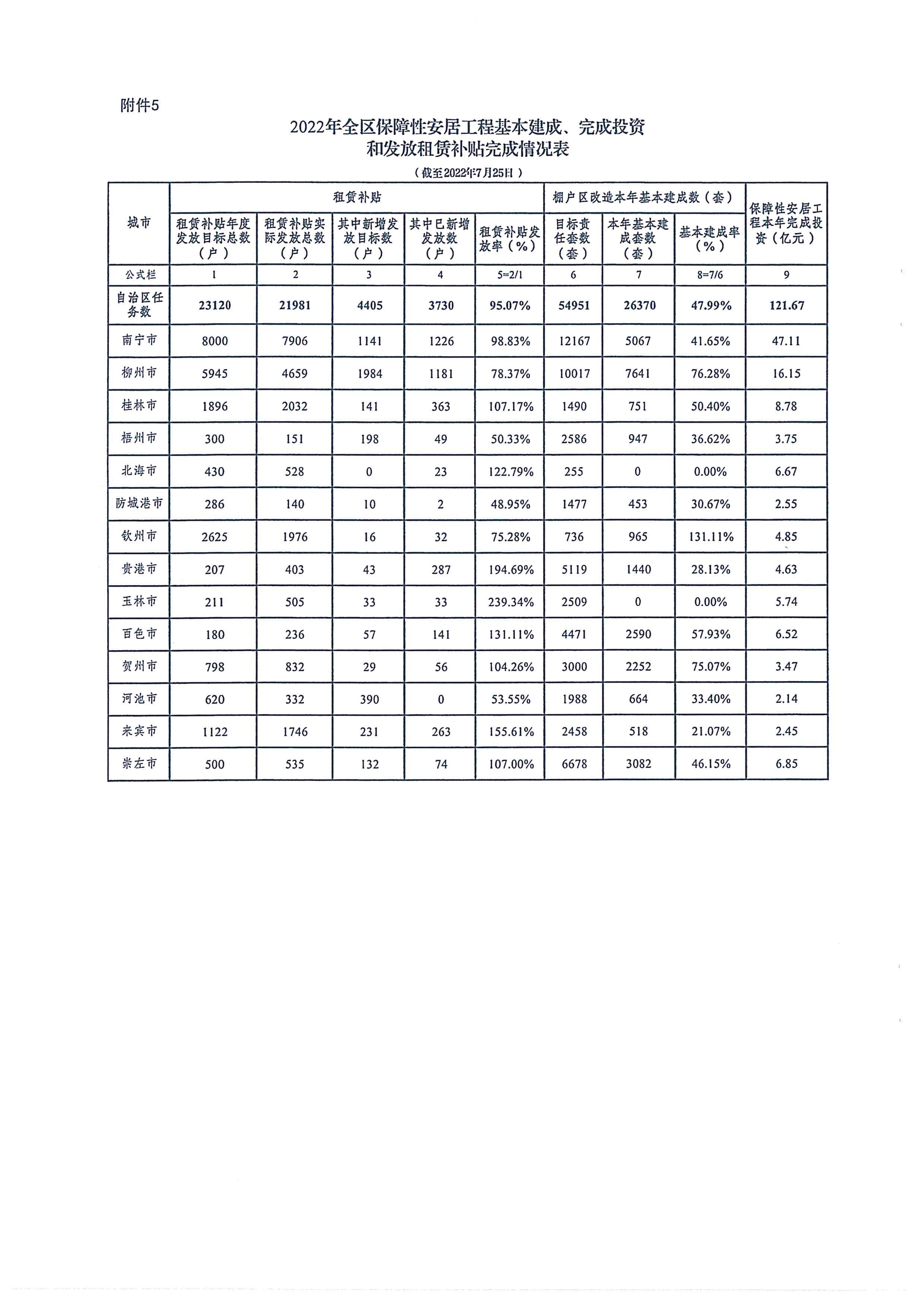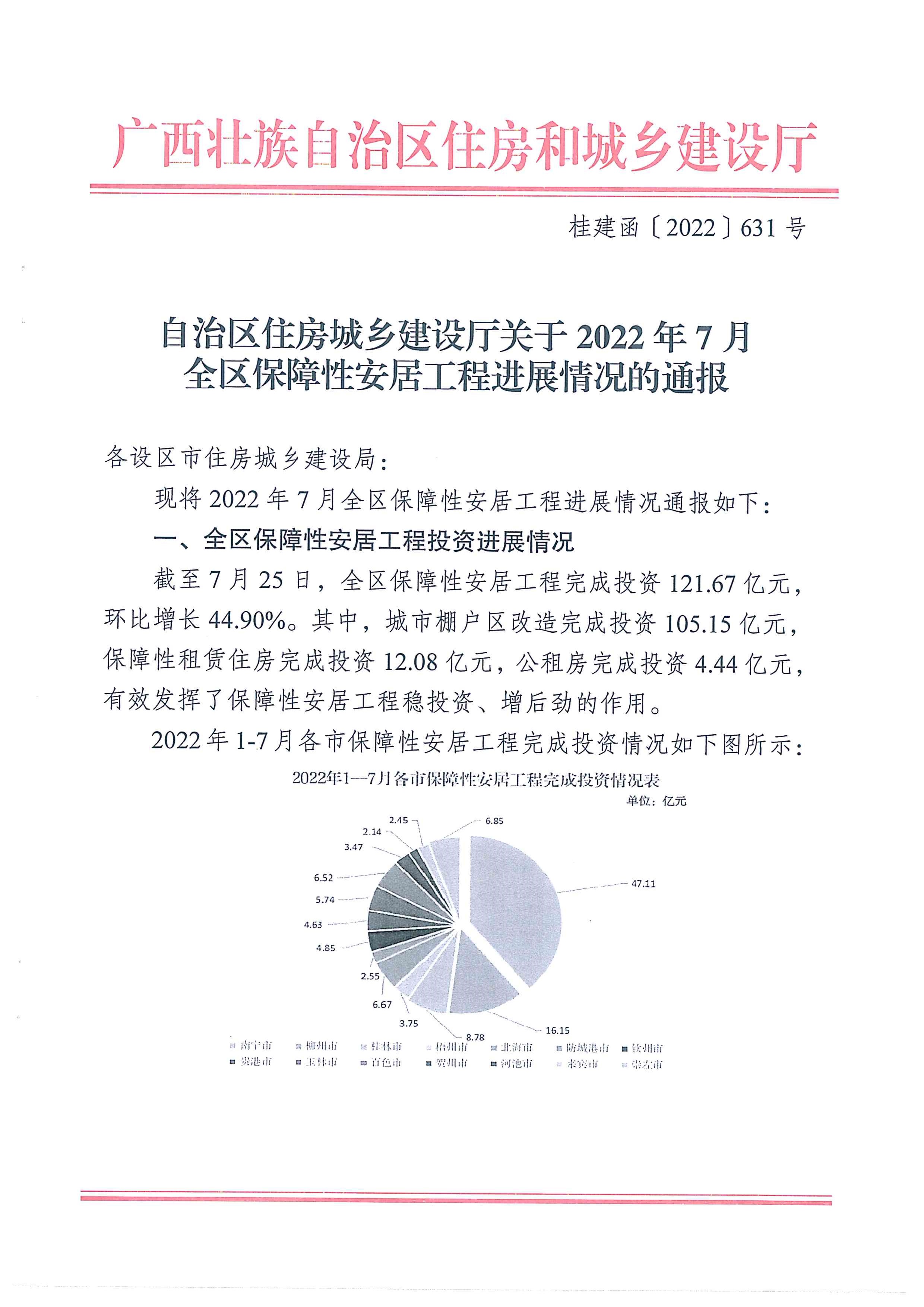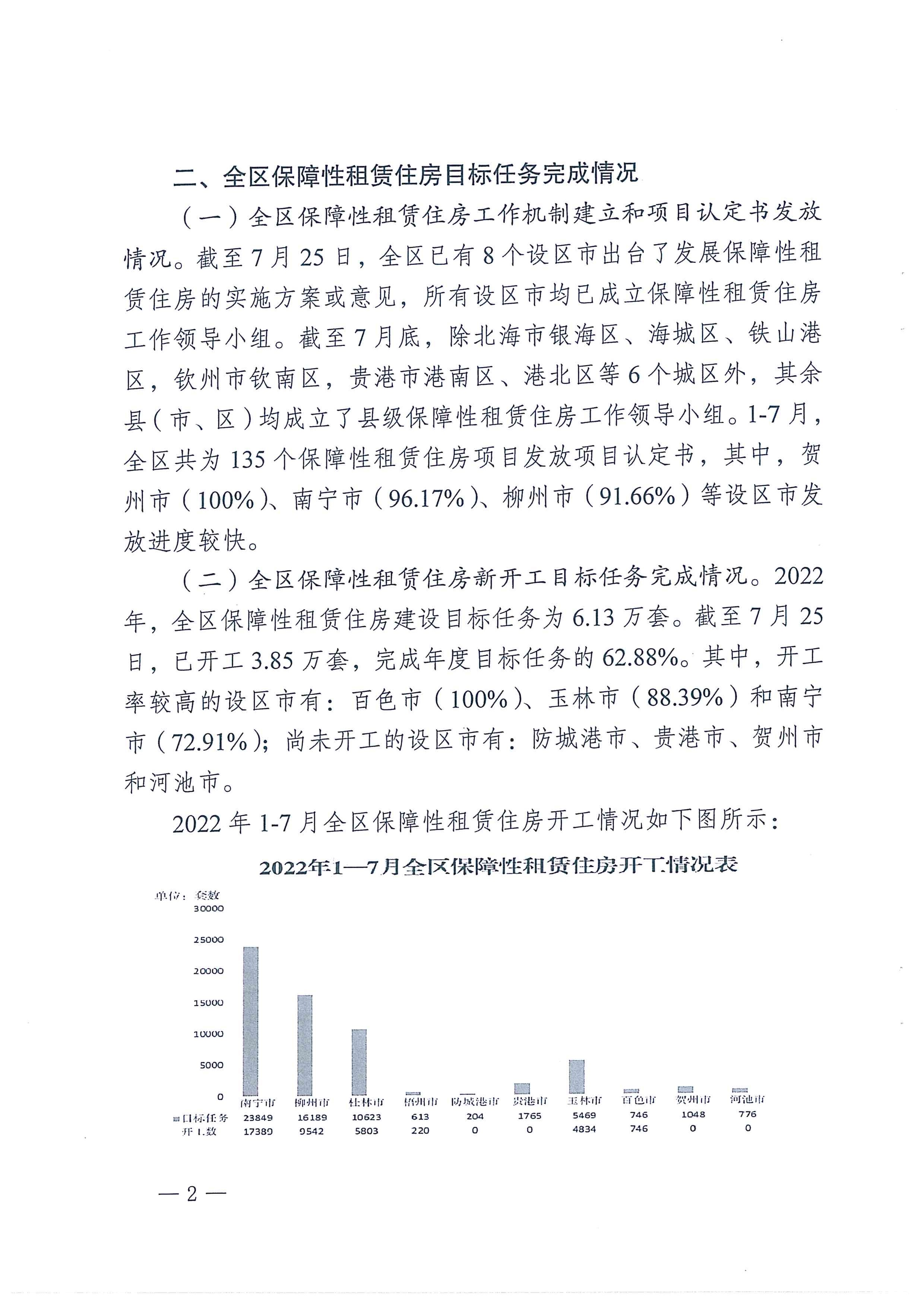 柳州自治区住建厅关于2022年7月全区保障性安居工程进展情况的通报