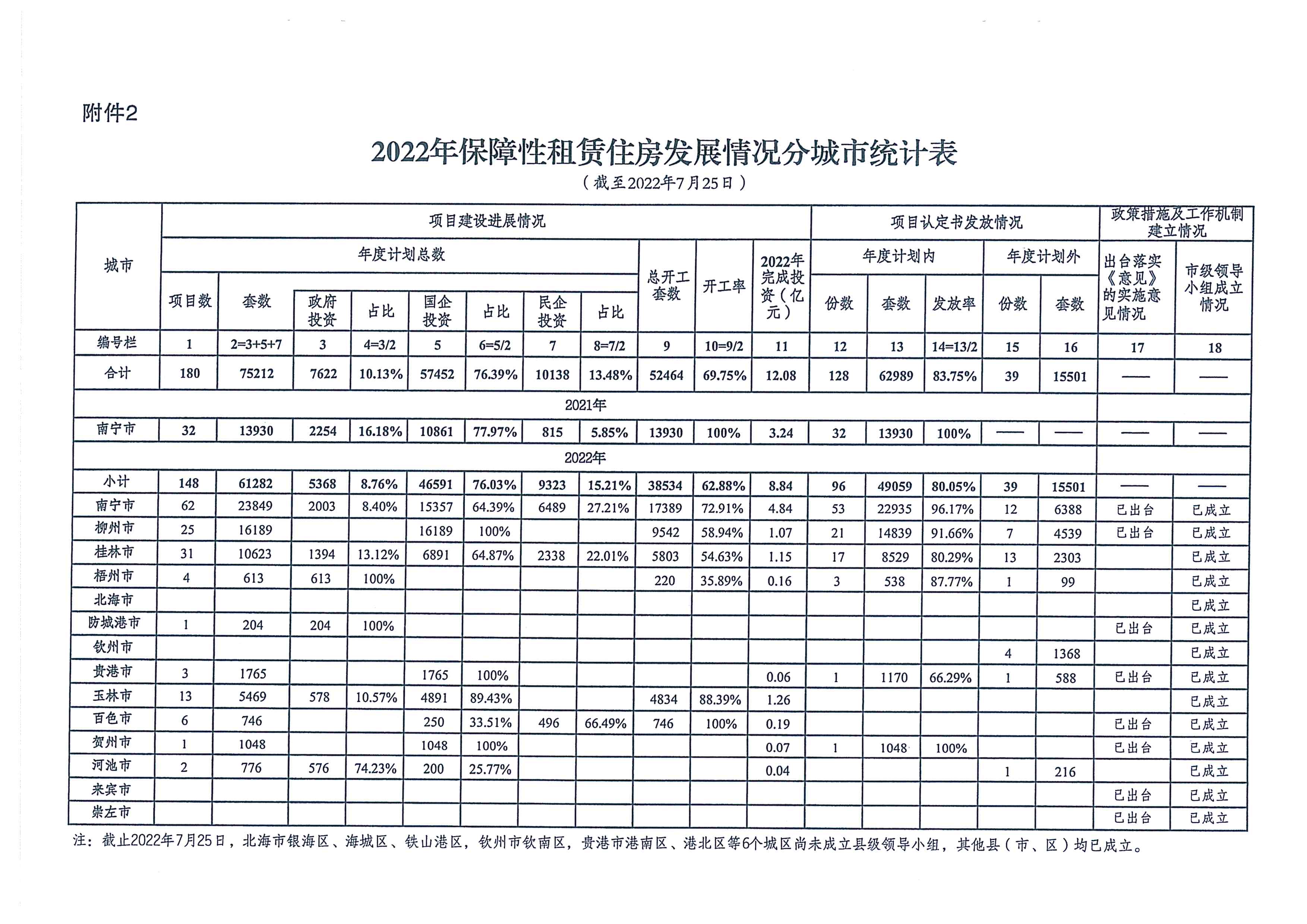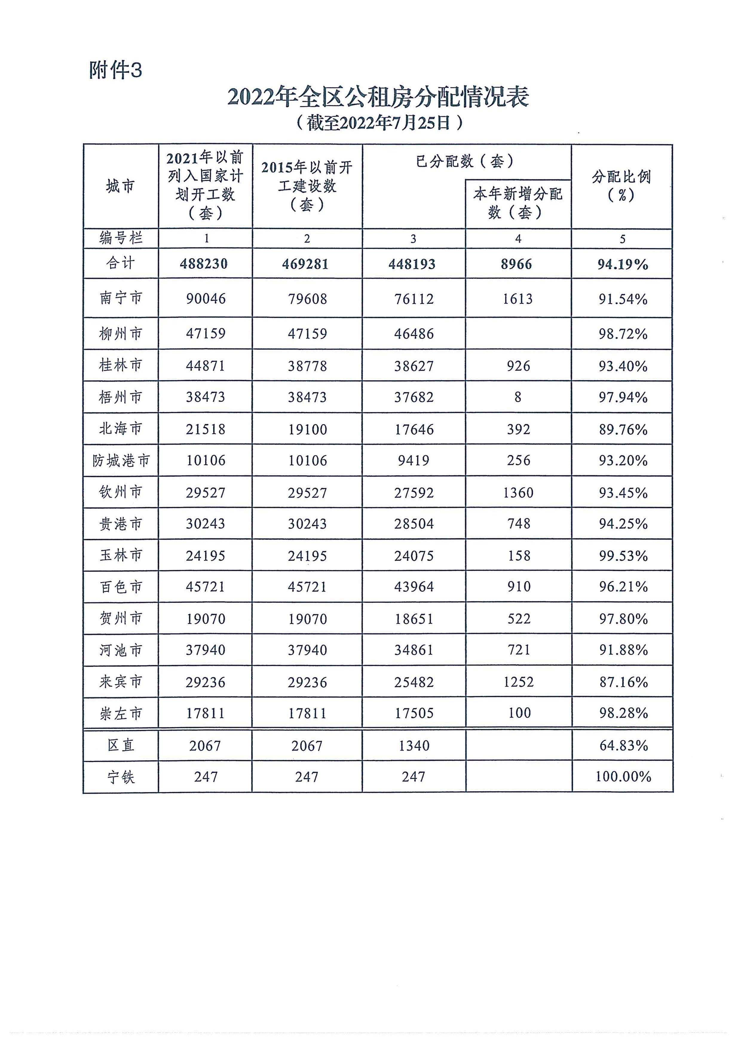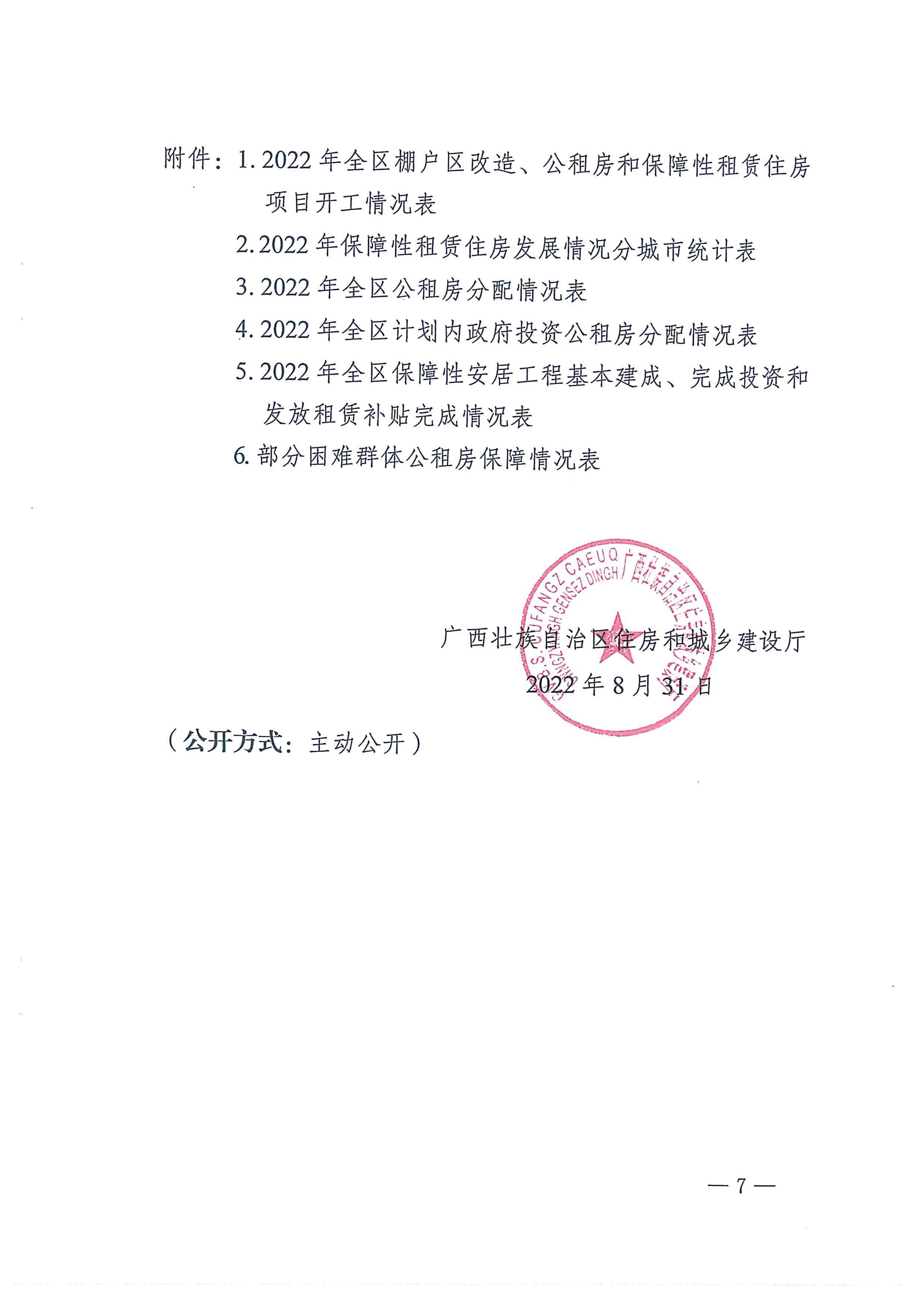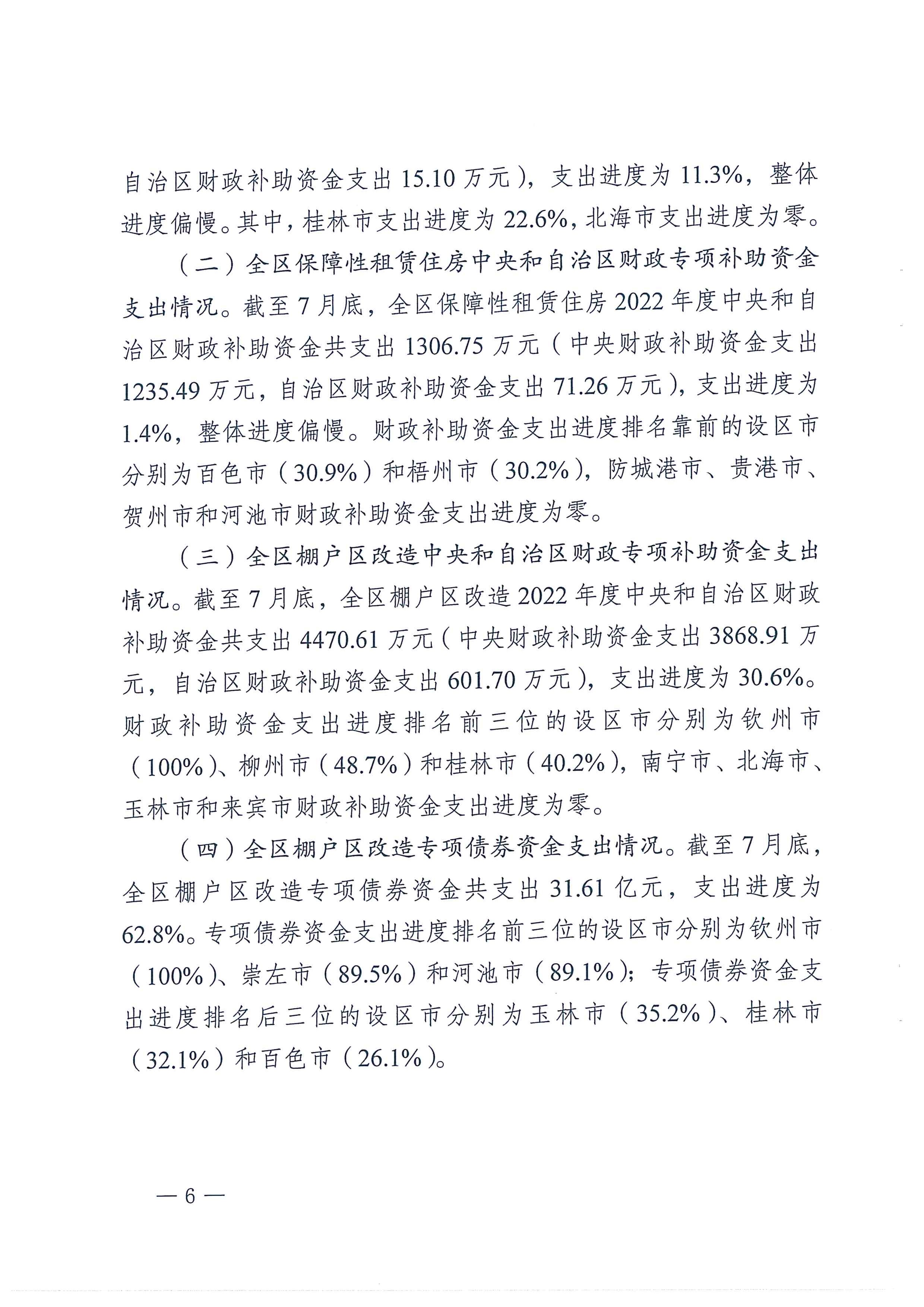 柳州自治区住建厅关于2022年7月全区保障性安居工程进展情况的通报