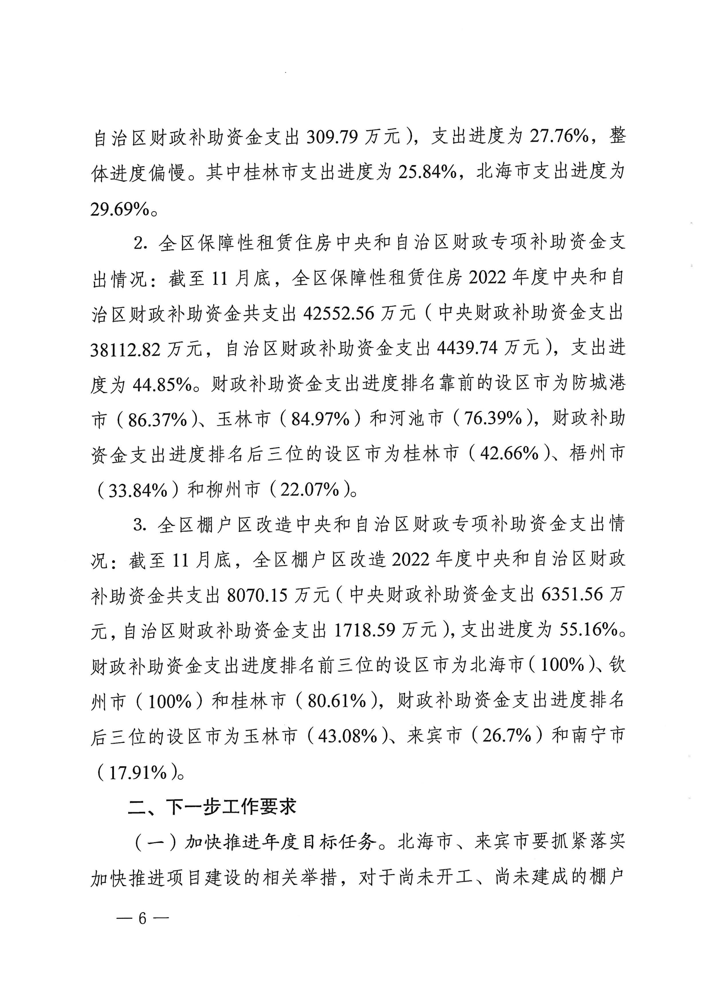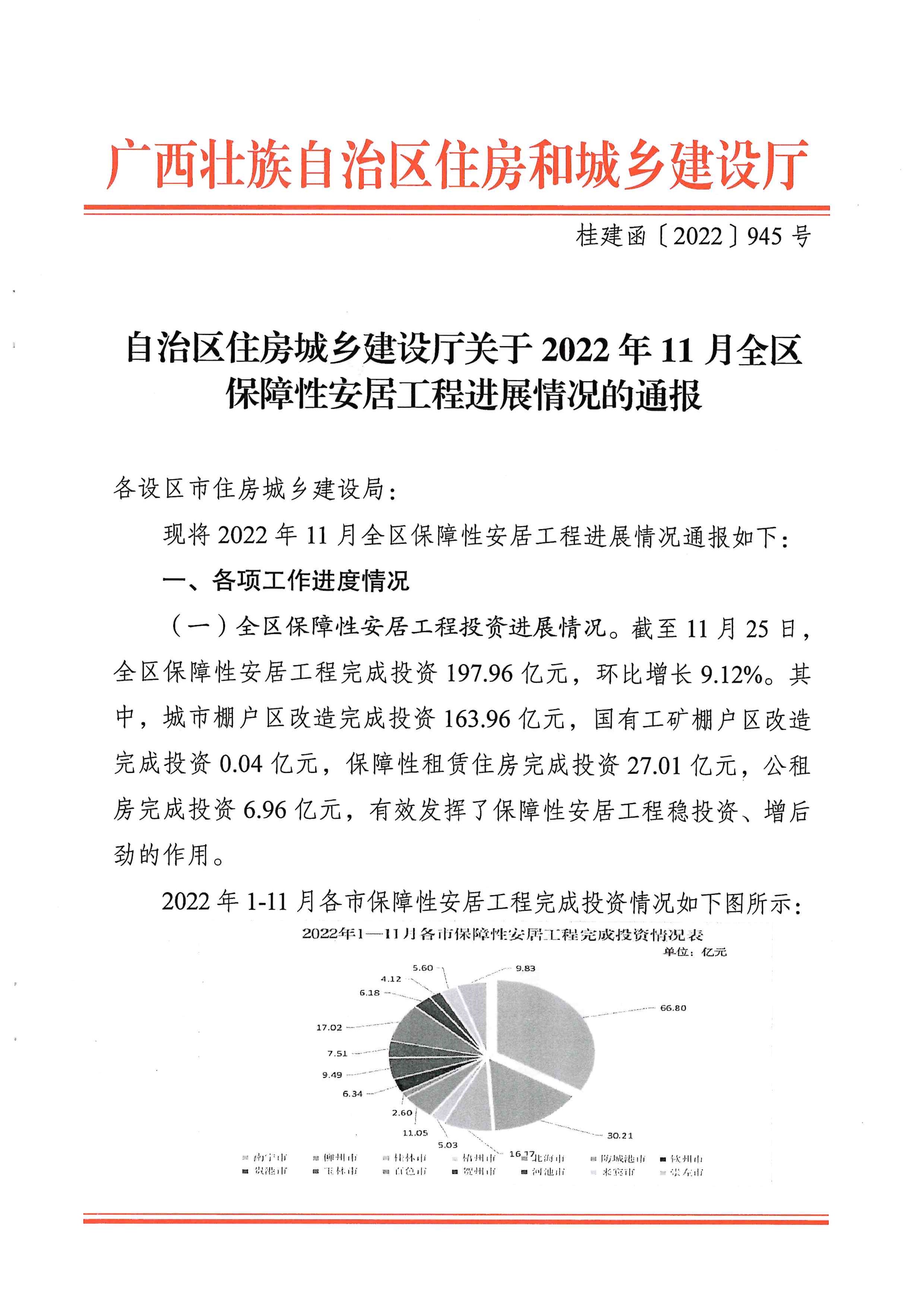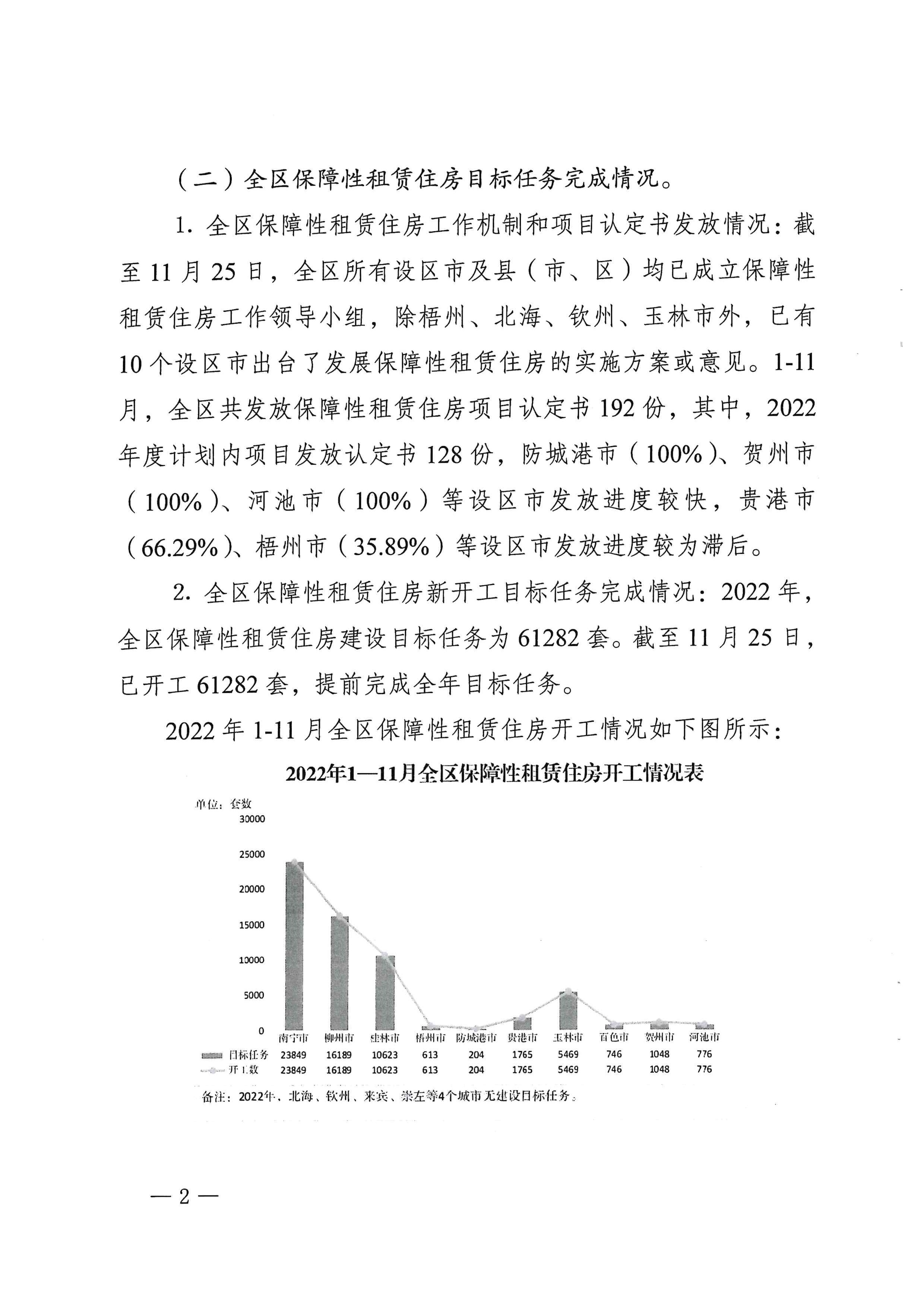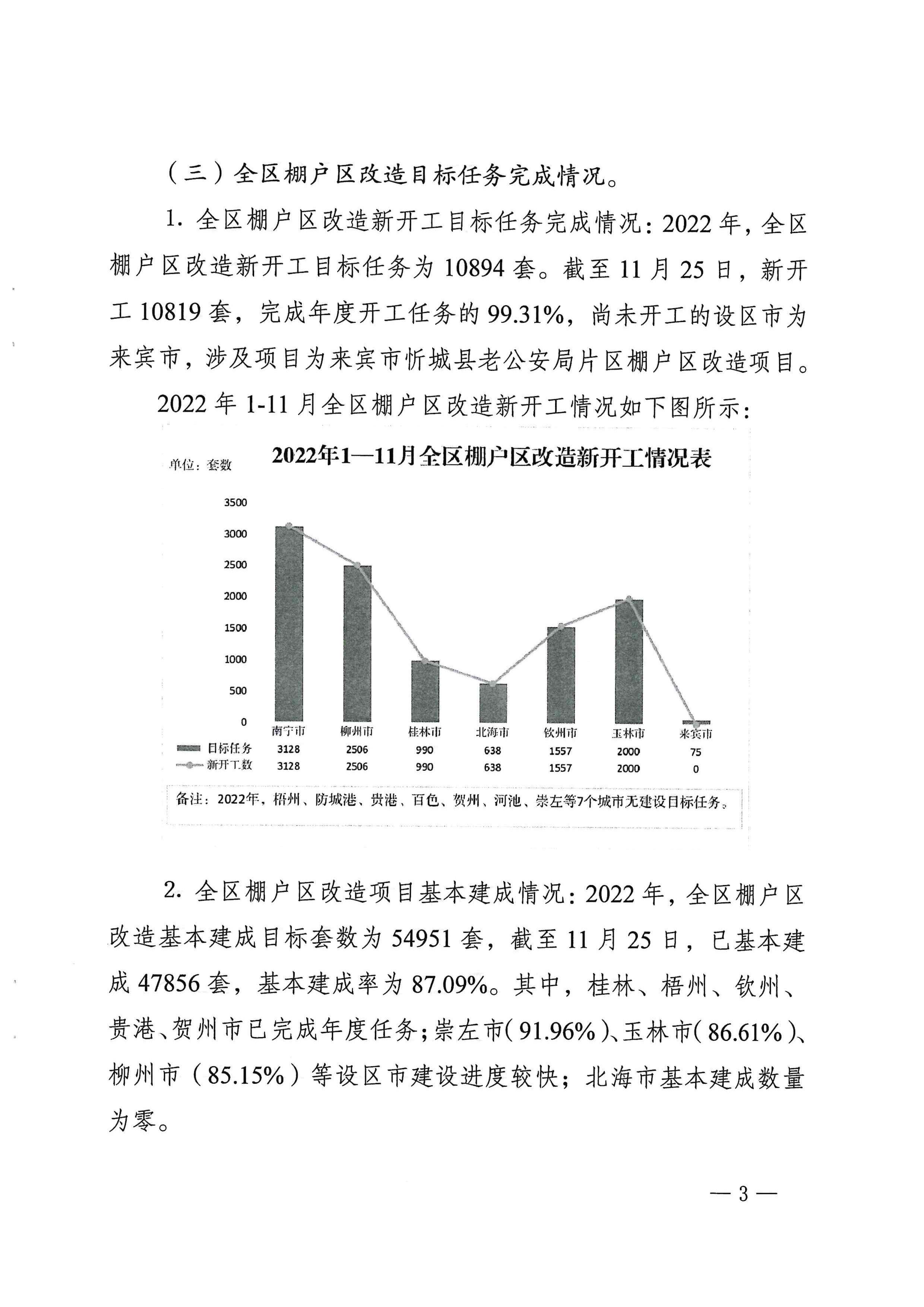 柳州自治区住建厅关于2022年11月全区保障性安居工程进展情况的通报