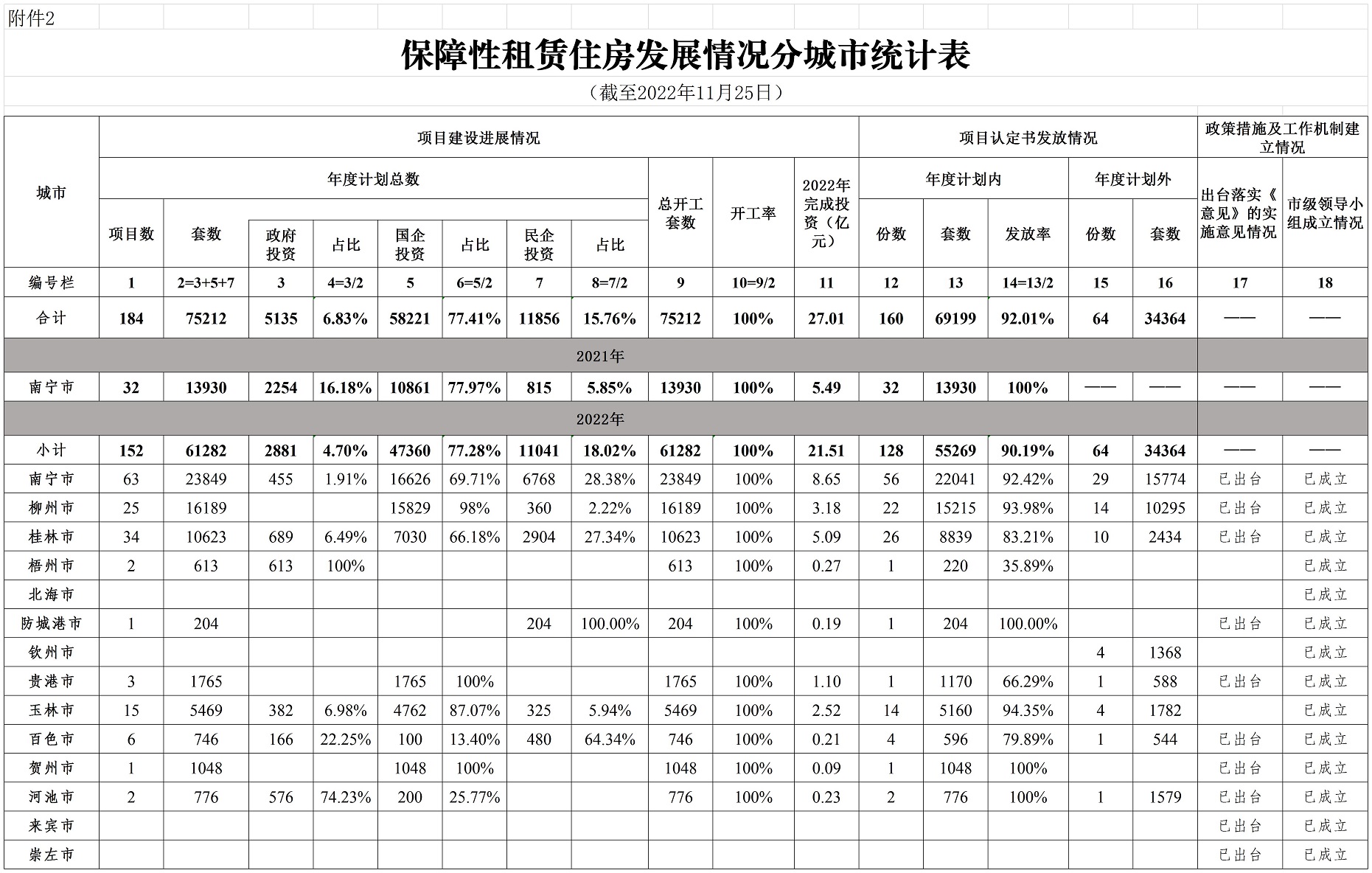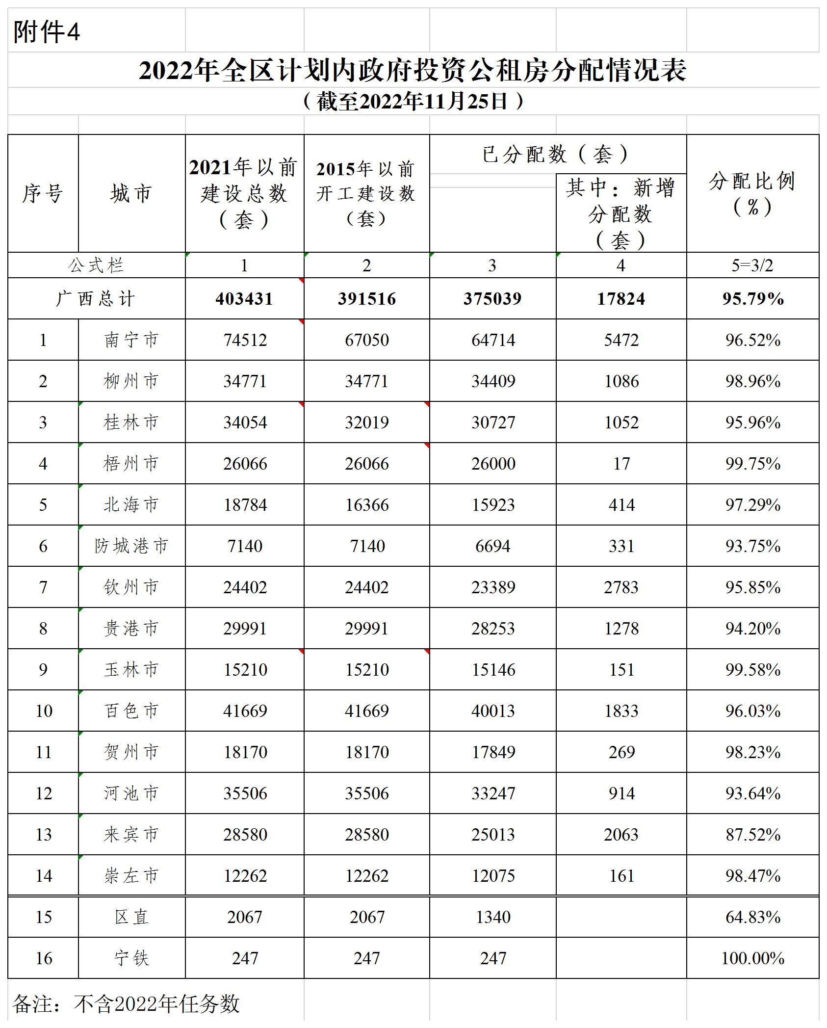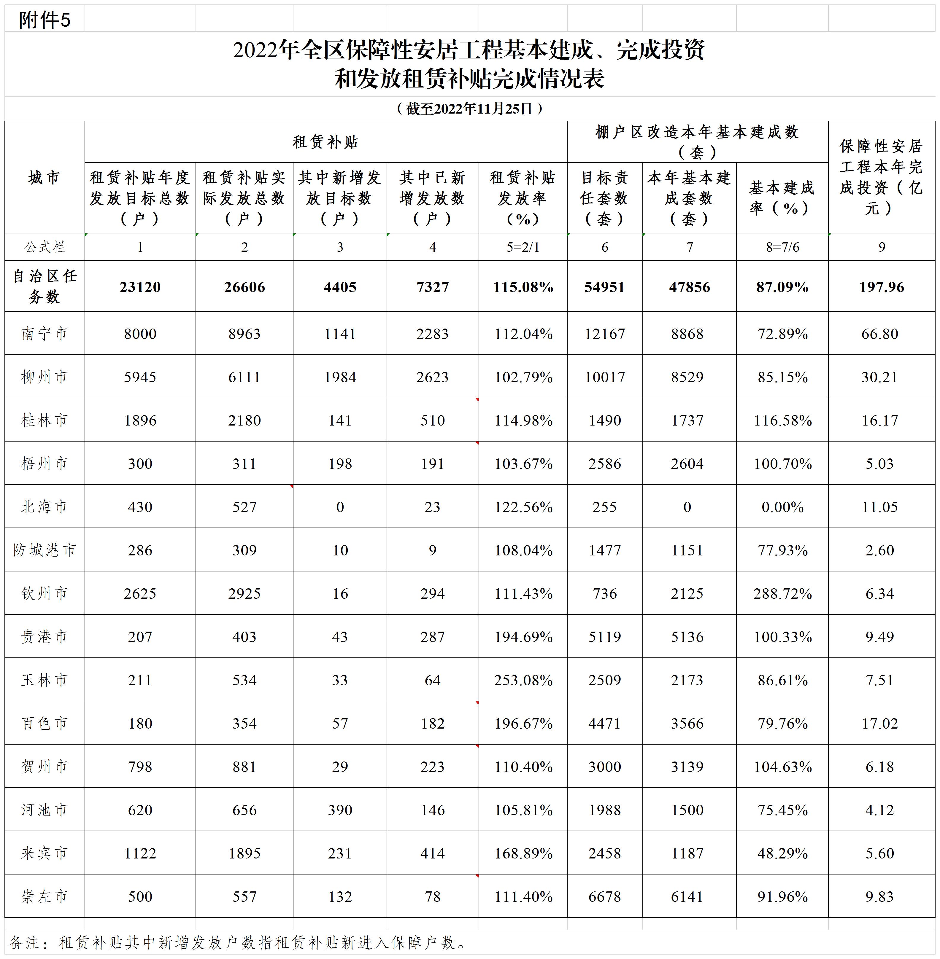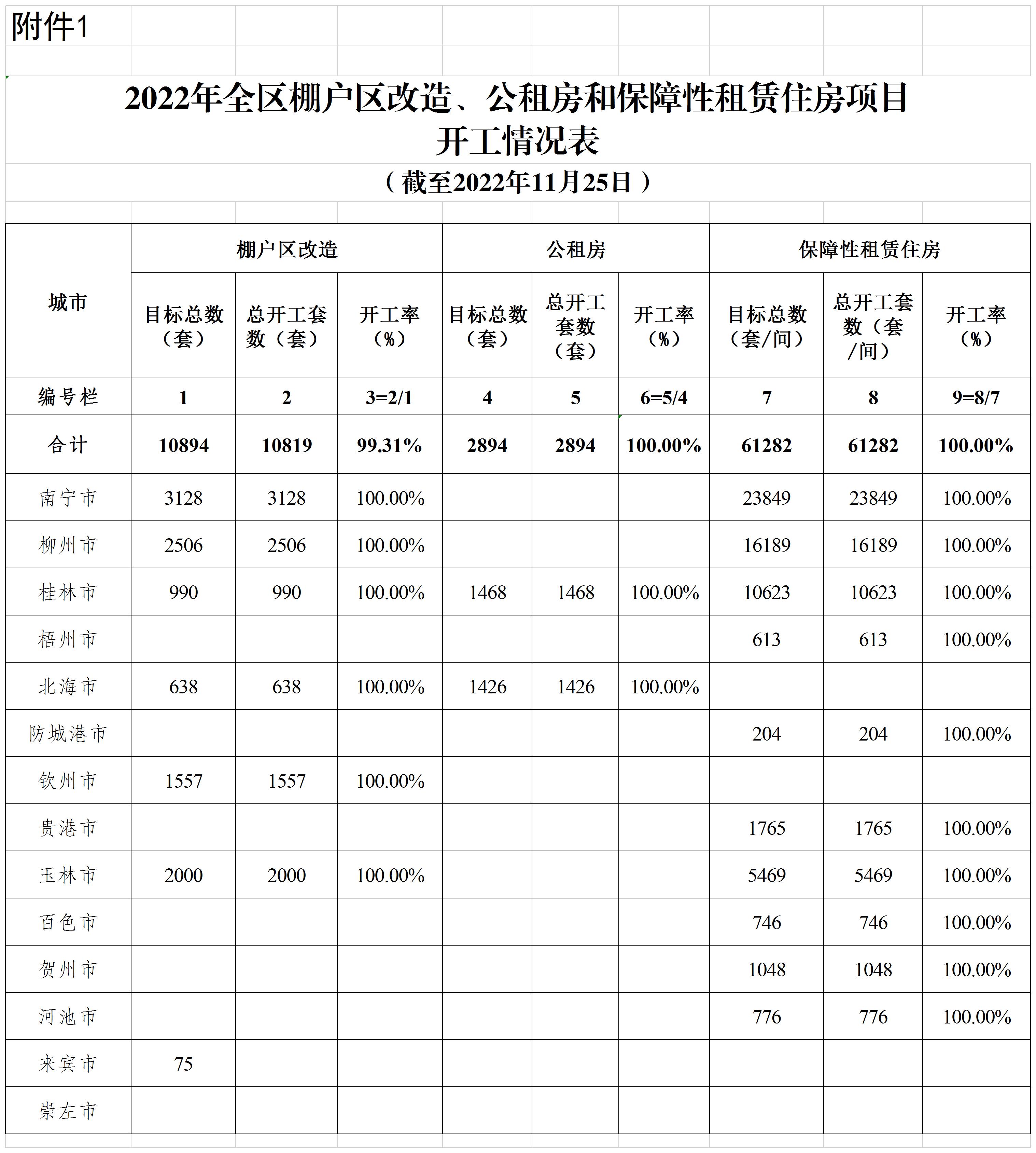柳州自治区住建厅关于2022年11月全区保障性安居工程进展情况的通报