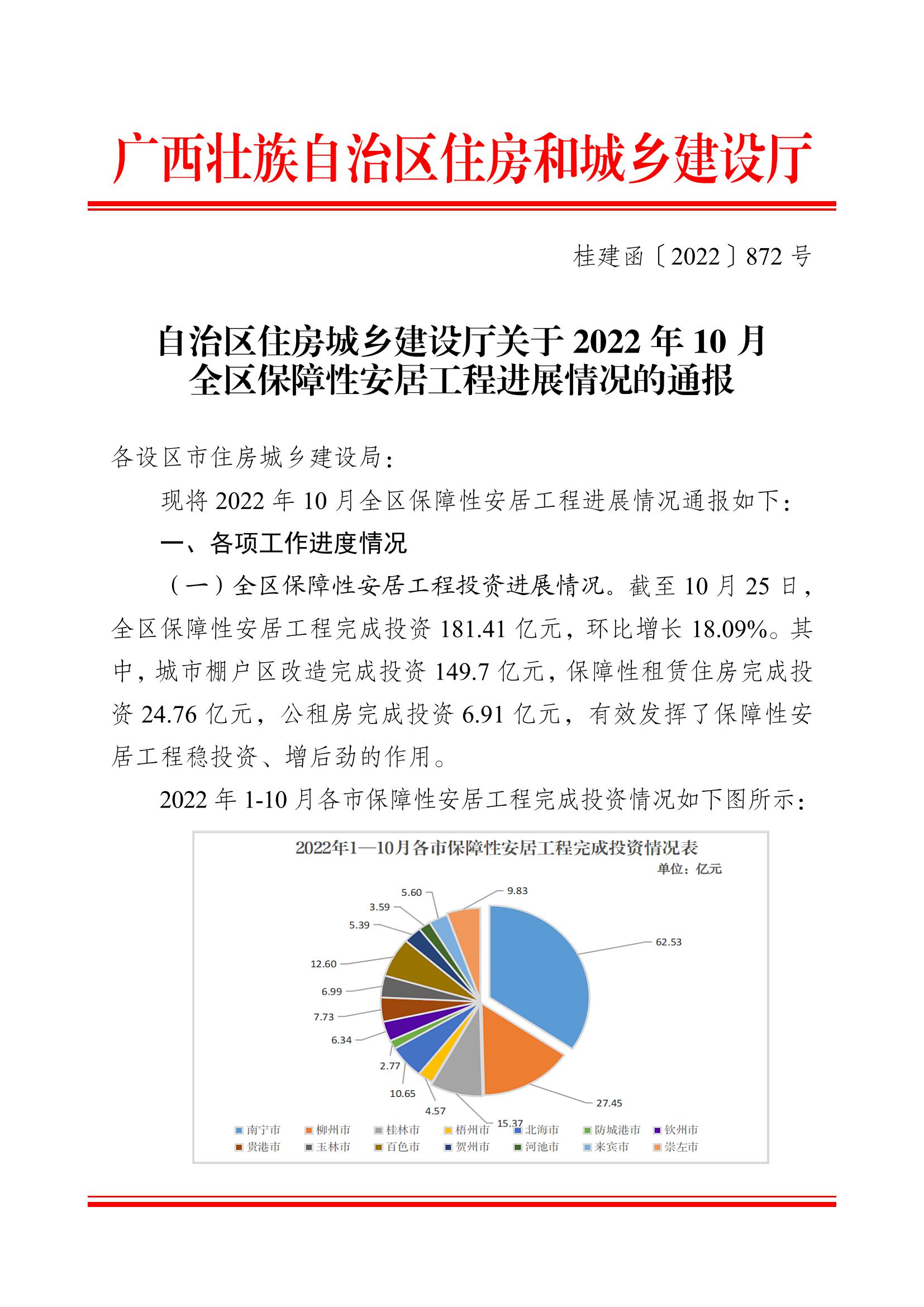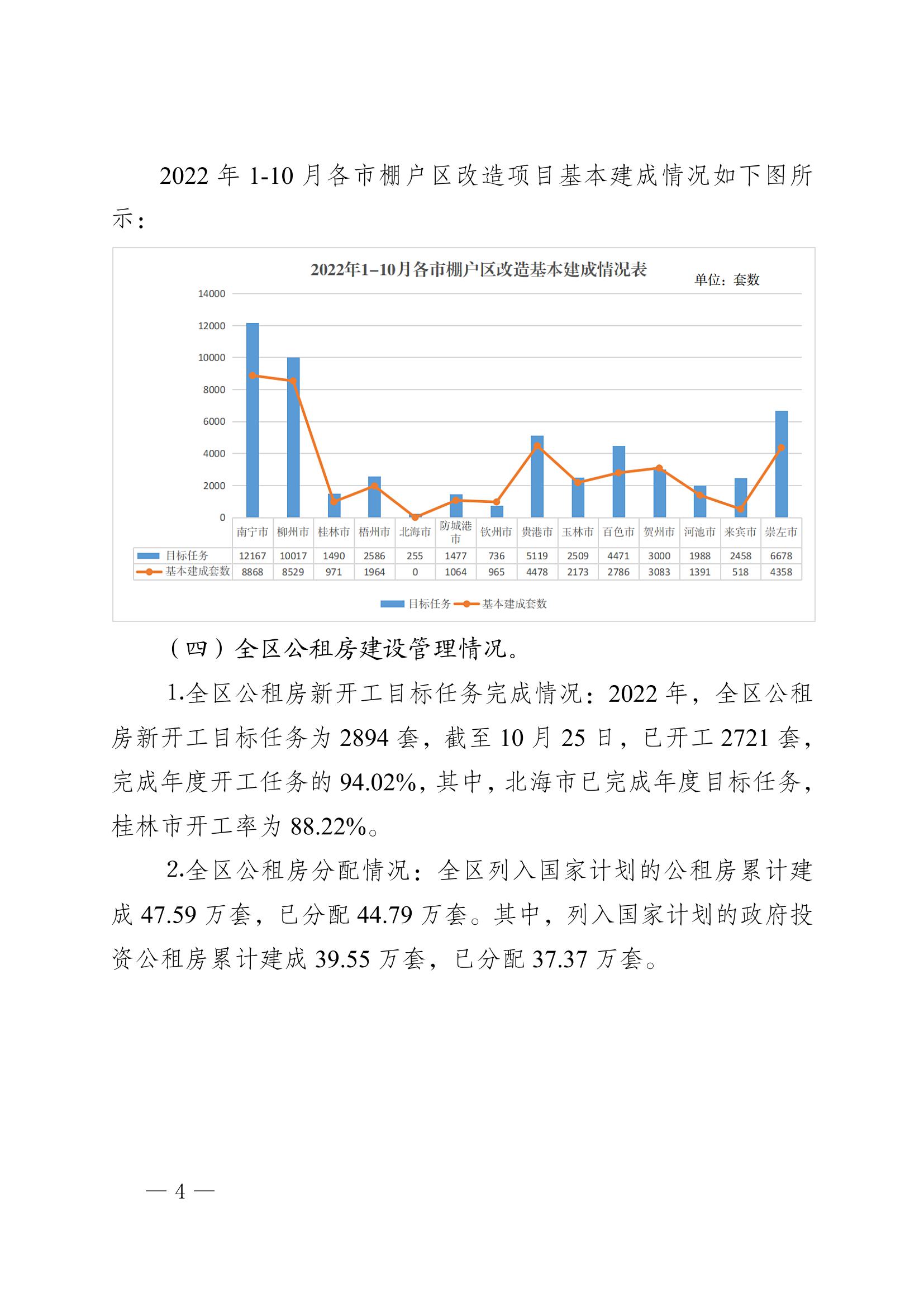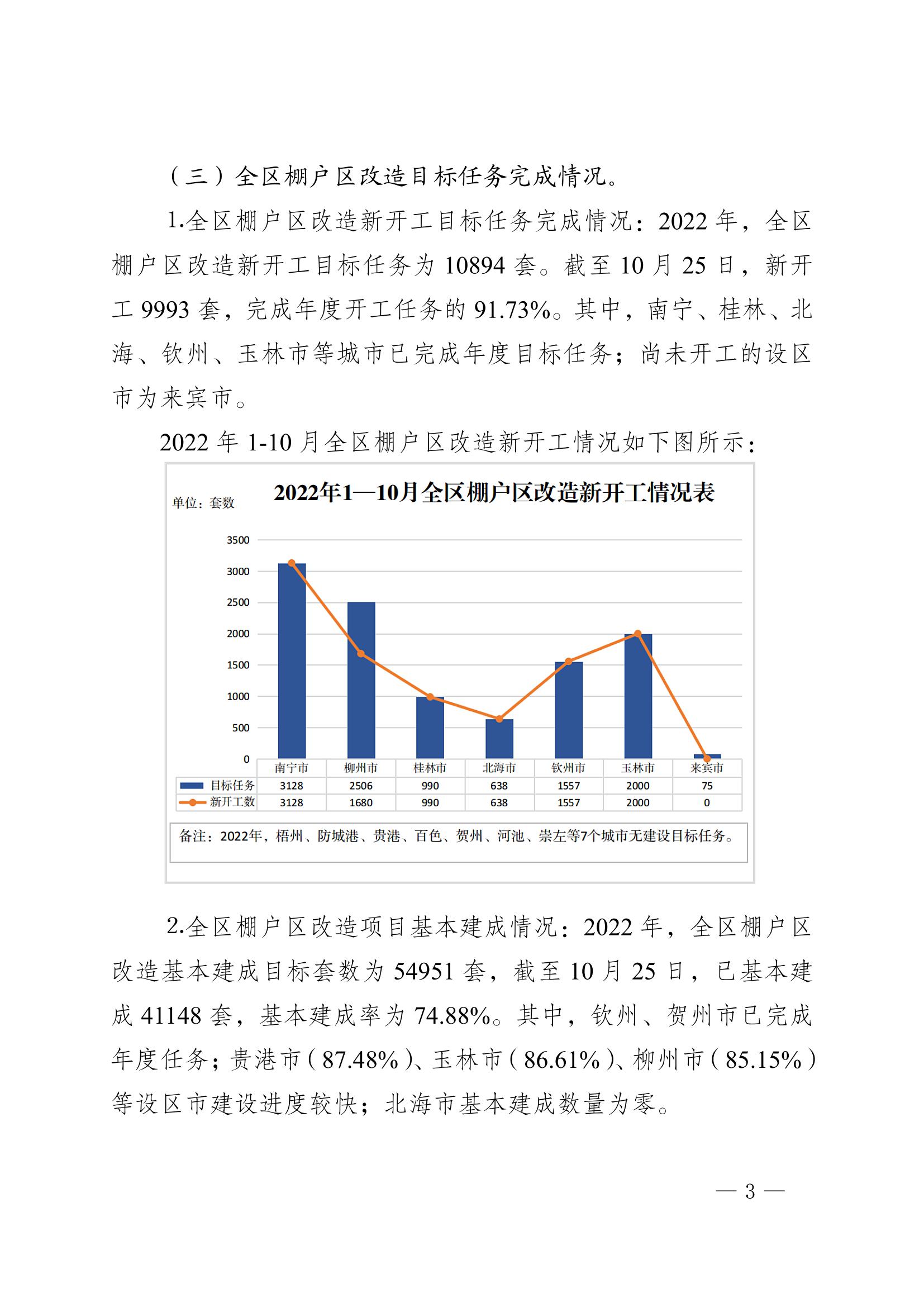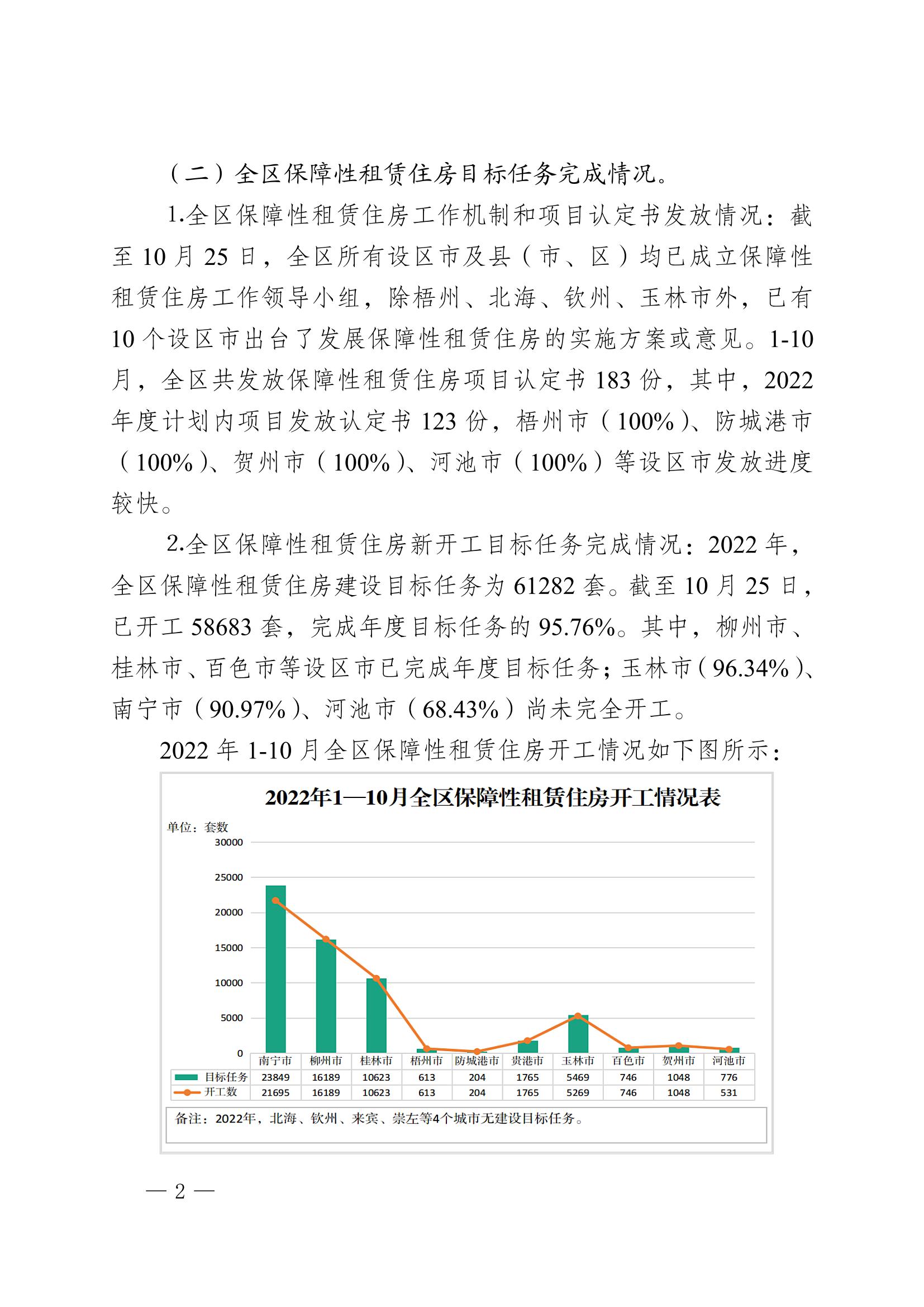 柳州自治区住建厅关于2022年10月全区保障性安居工程进展情况的通报