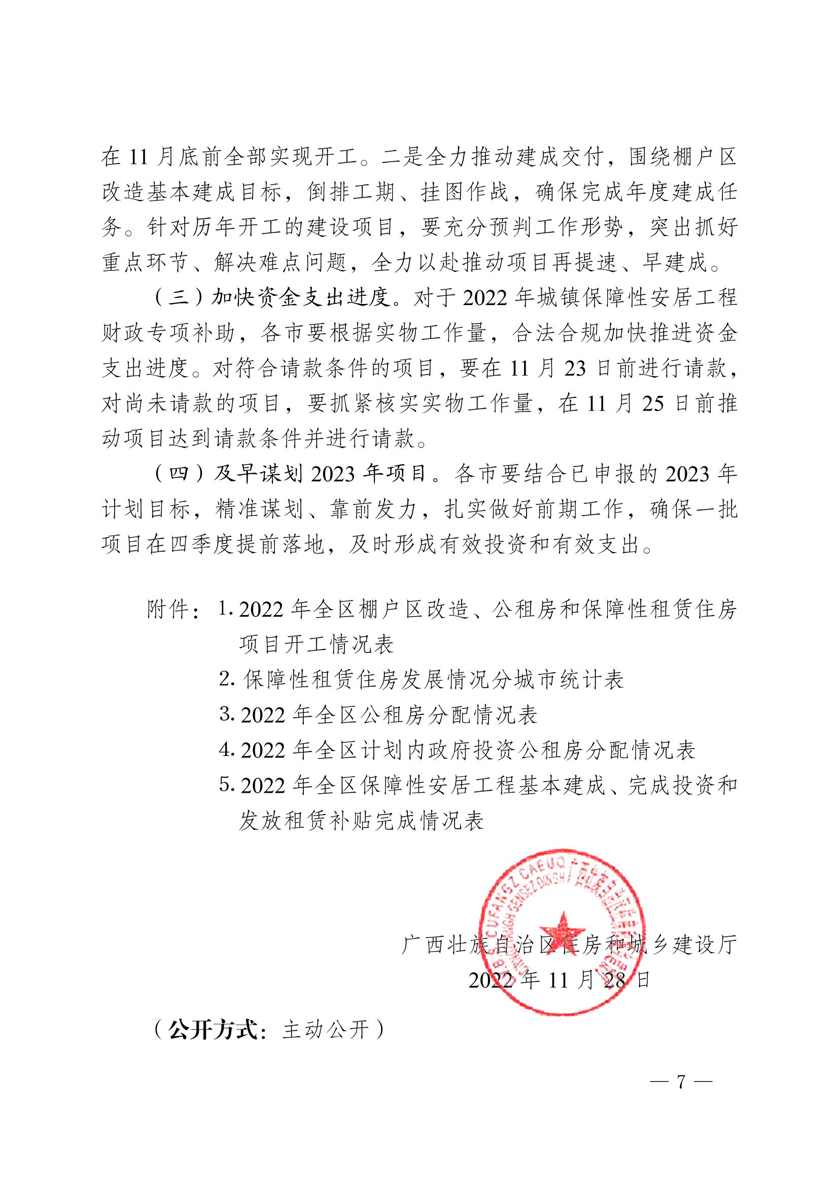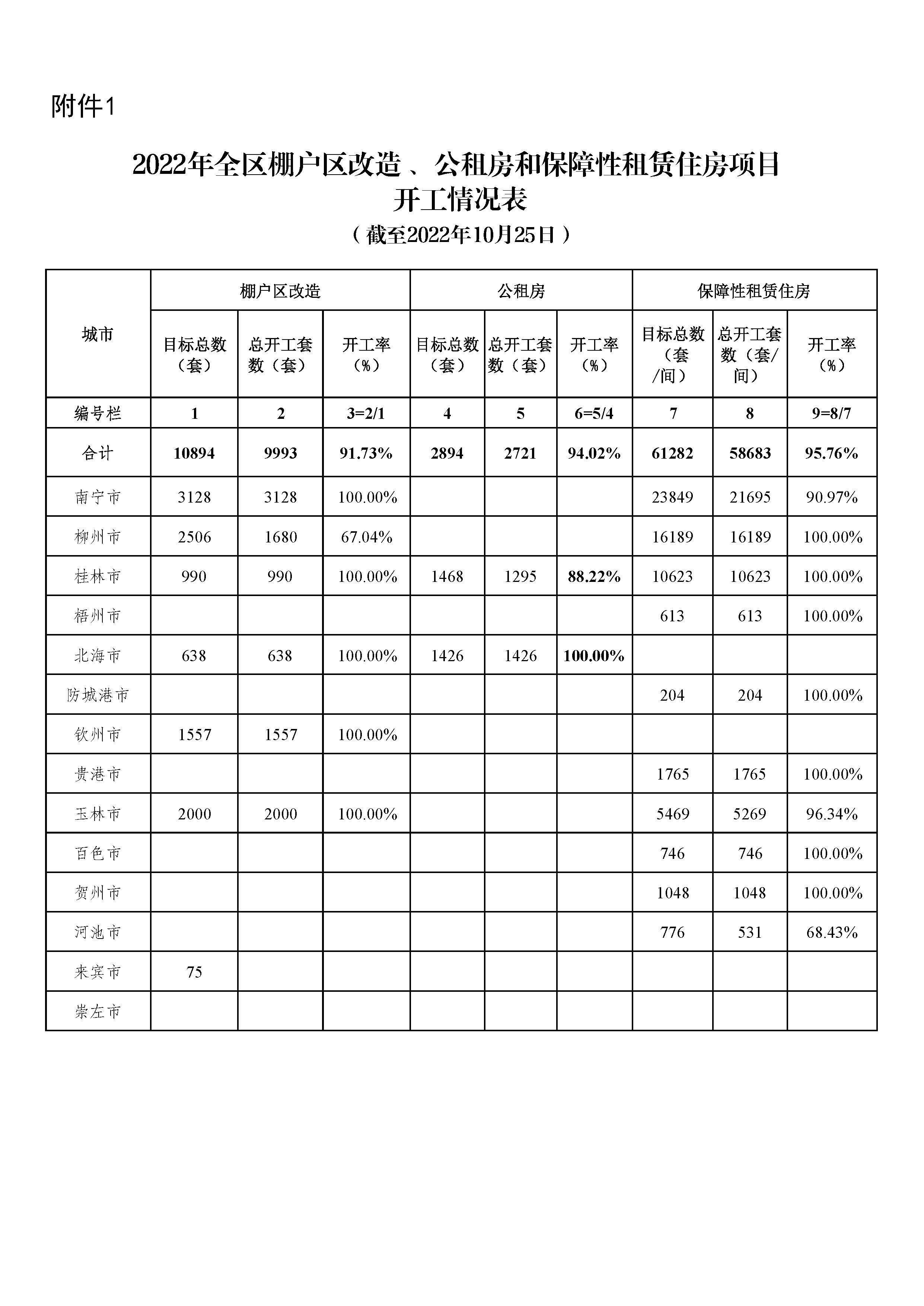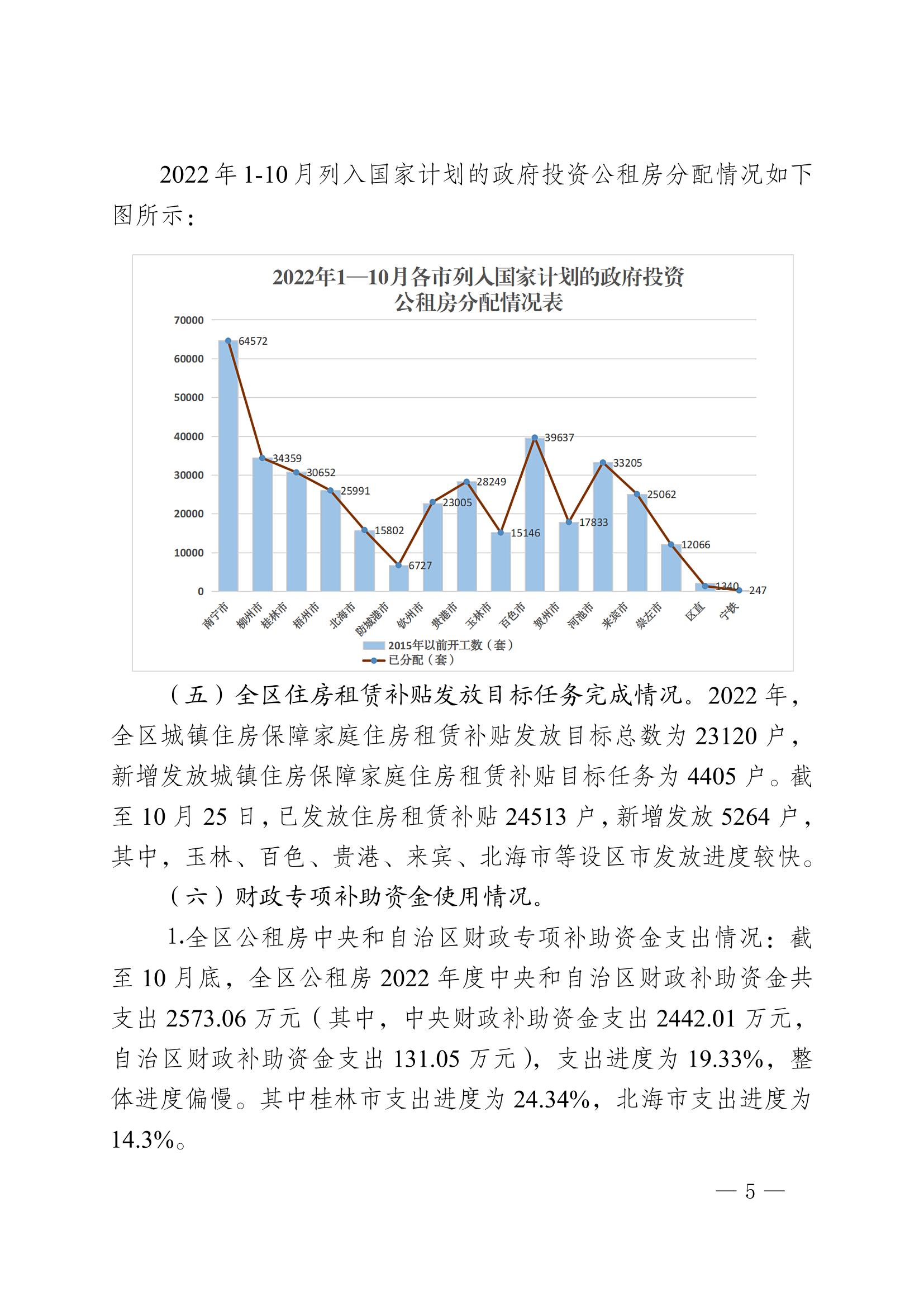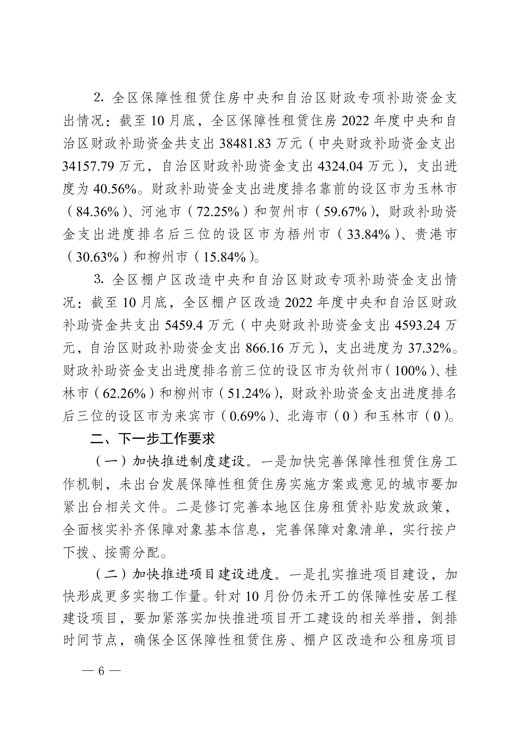 柳州自治区住建厅关于2022年10月全区保障性安居工程进展情况的通报