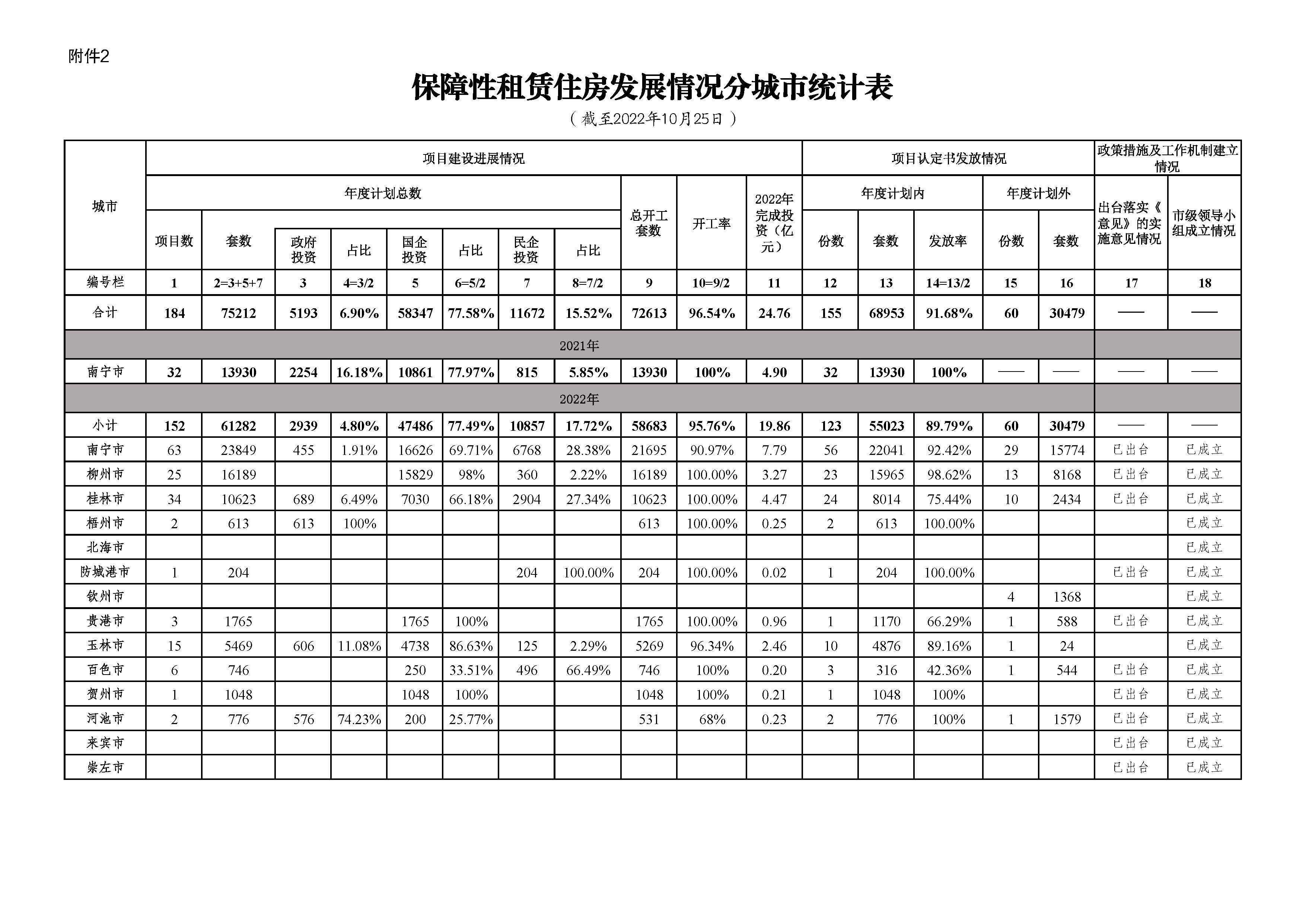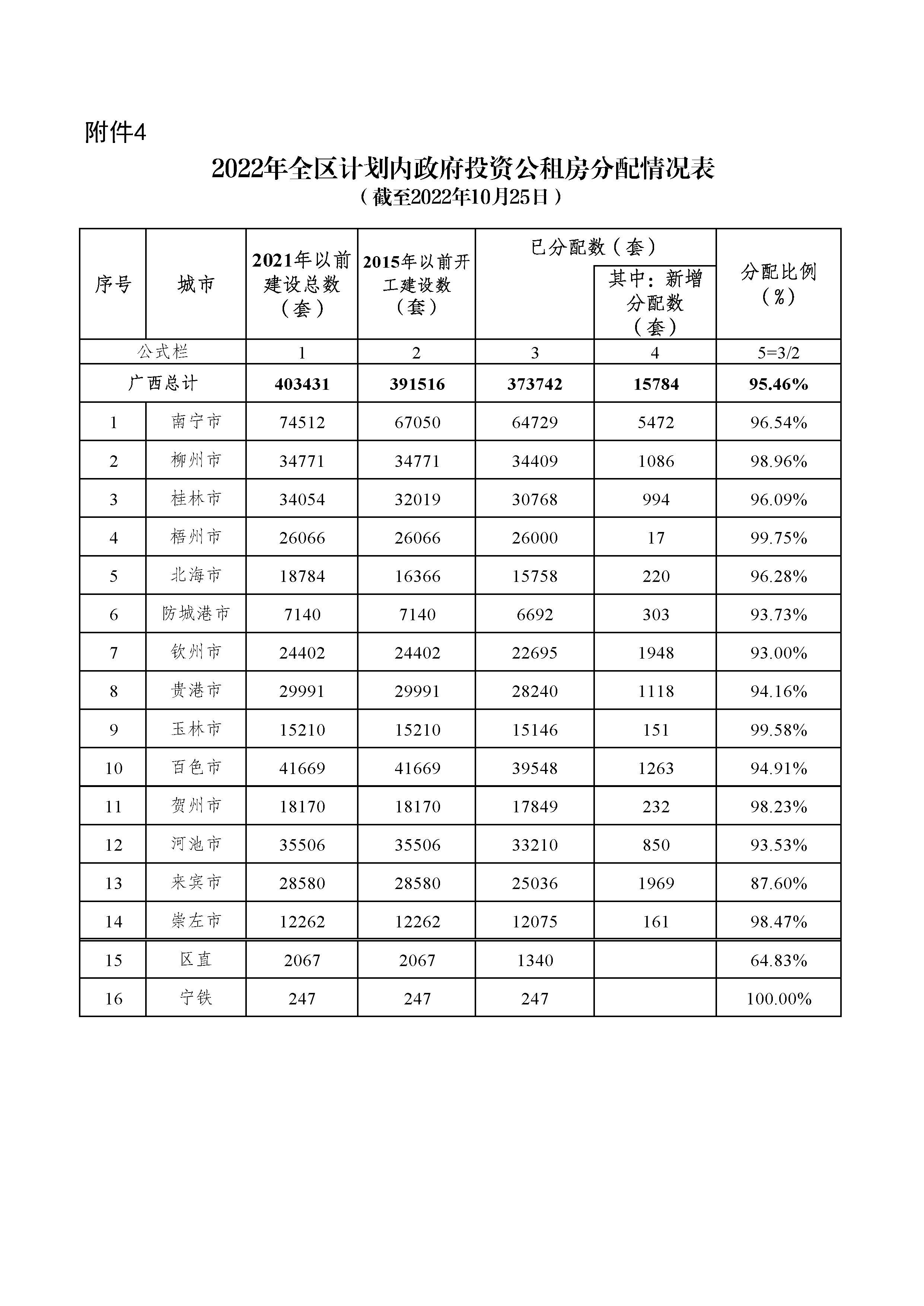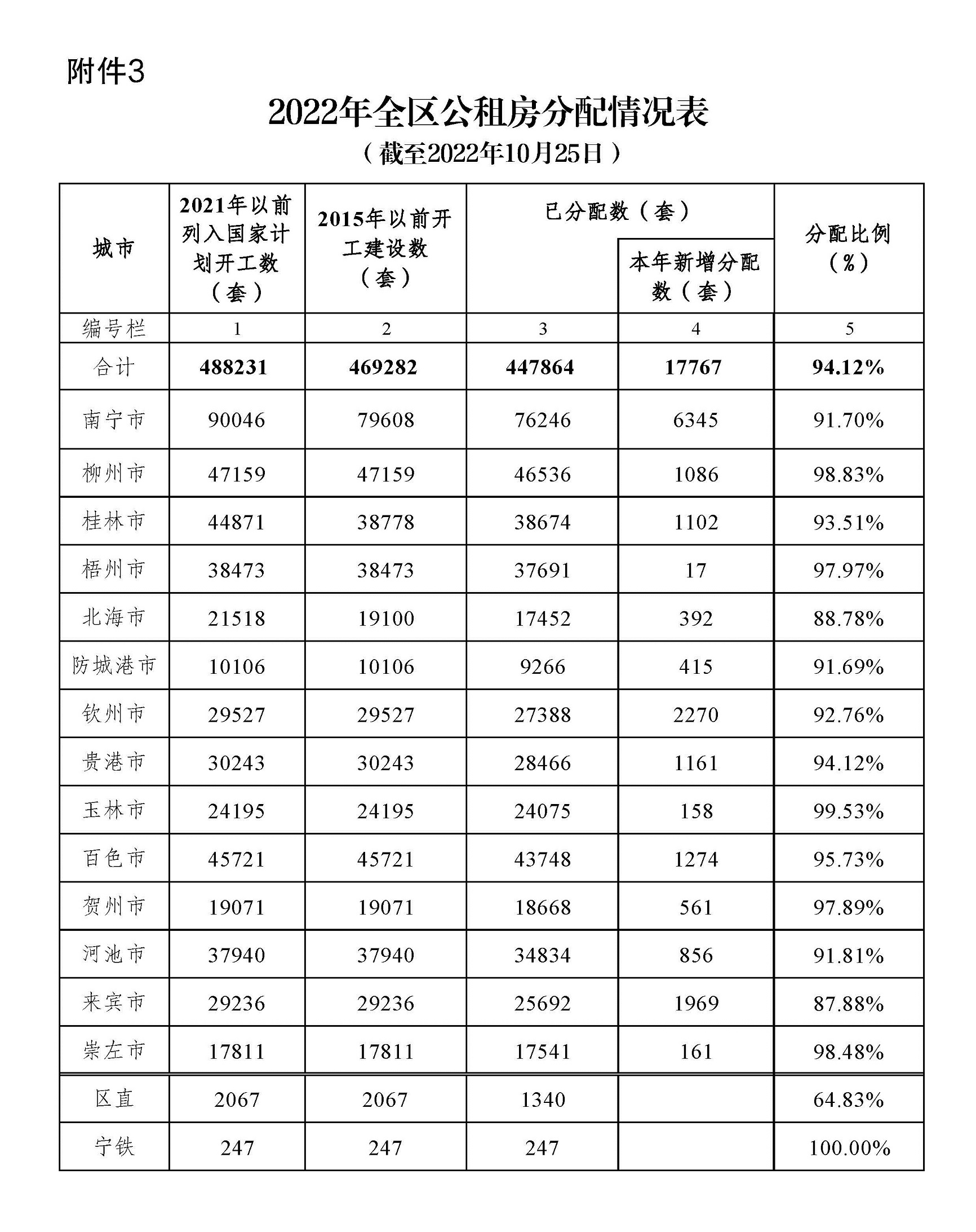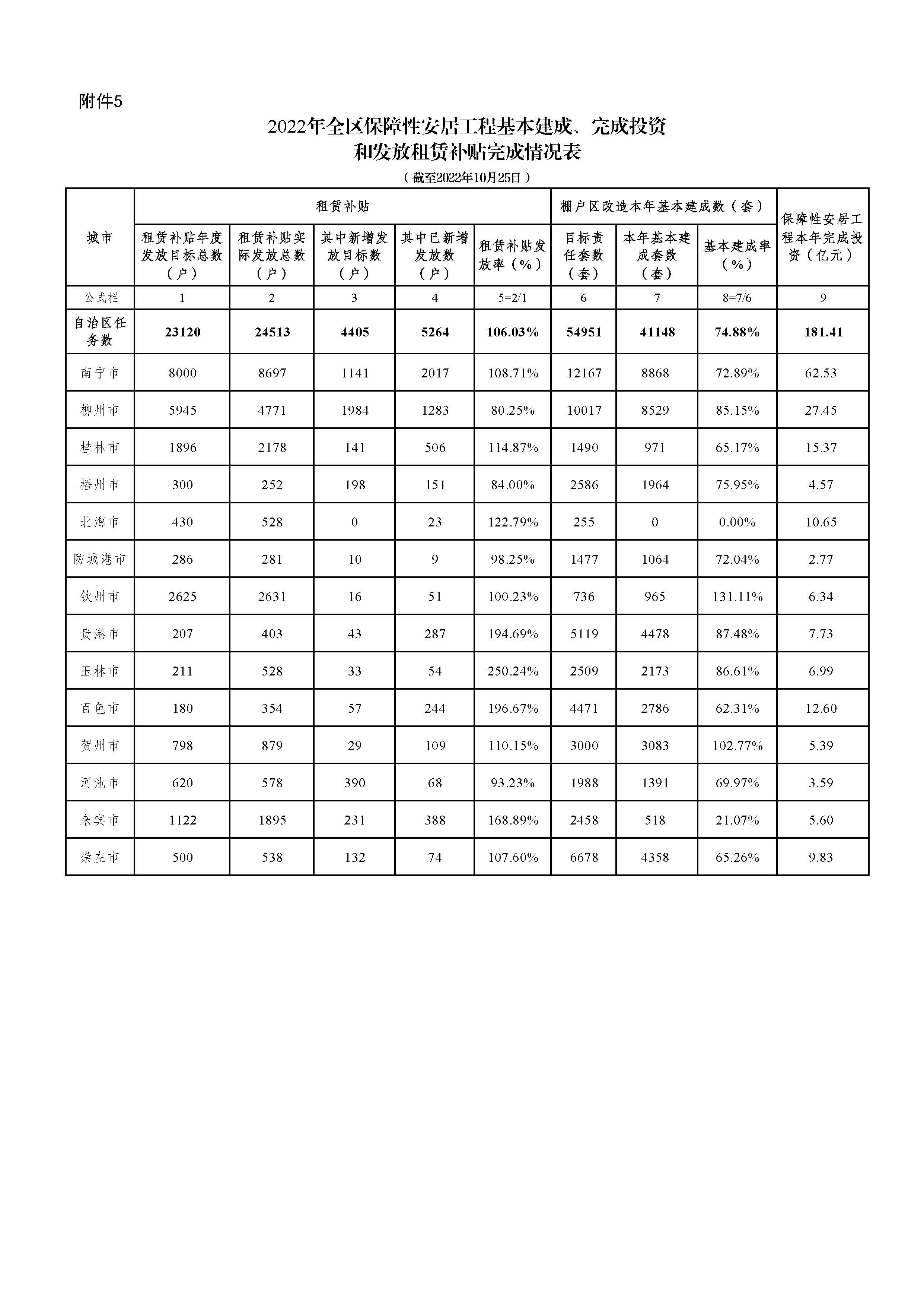 柳州自治区住建厅关于2022年10月全区保障性安居工程进展情况的通报