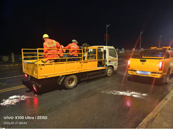 市政队伍对兴衡大桥进行除冰作业