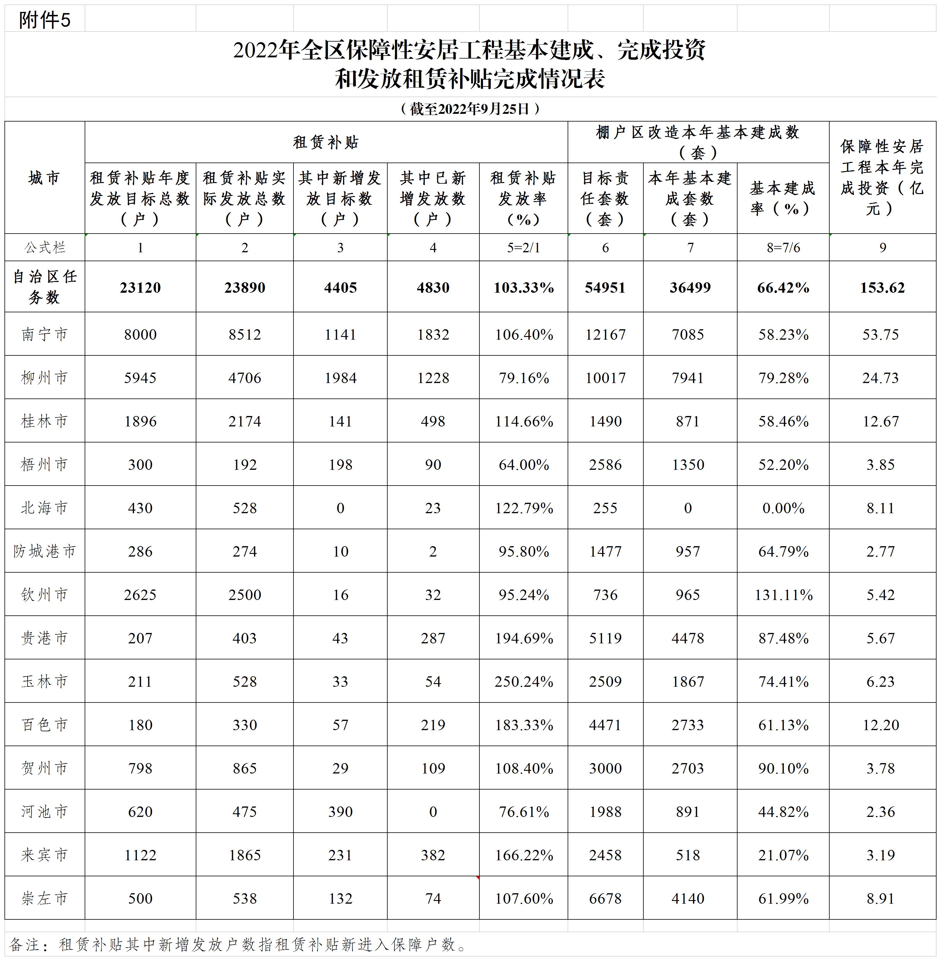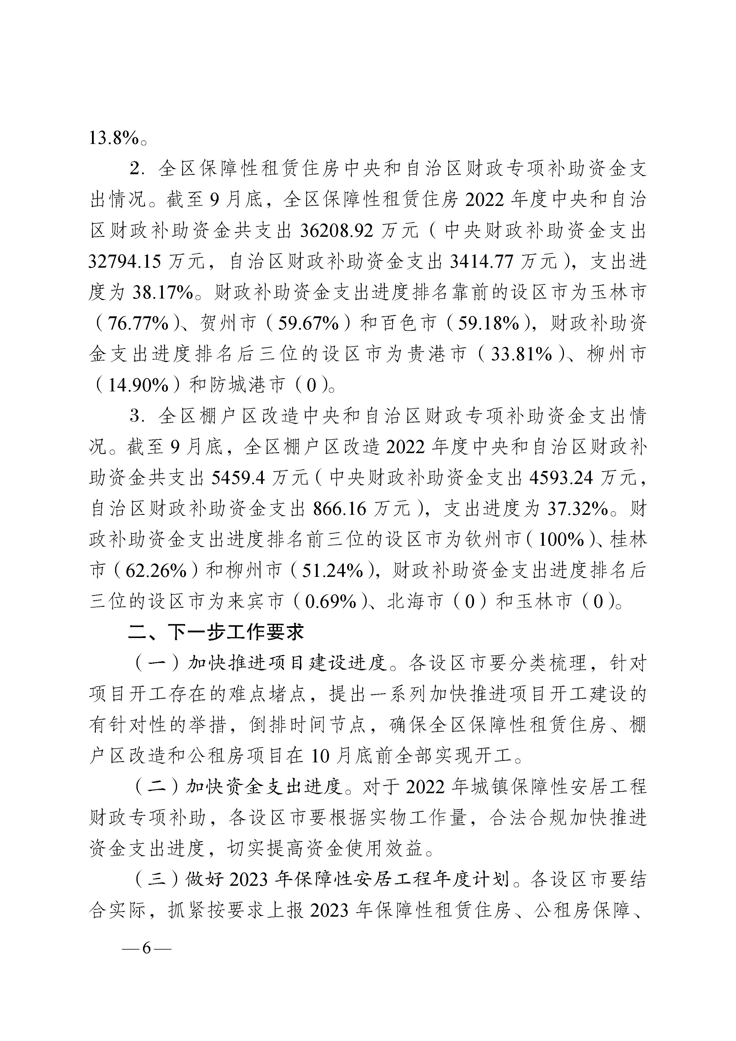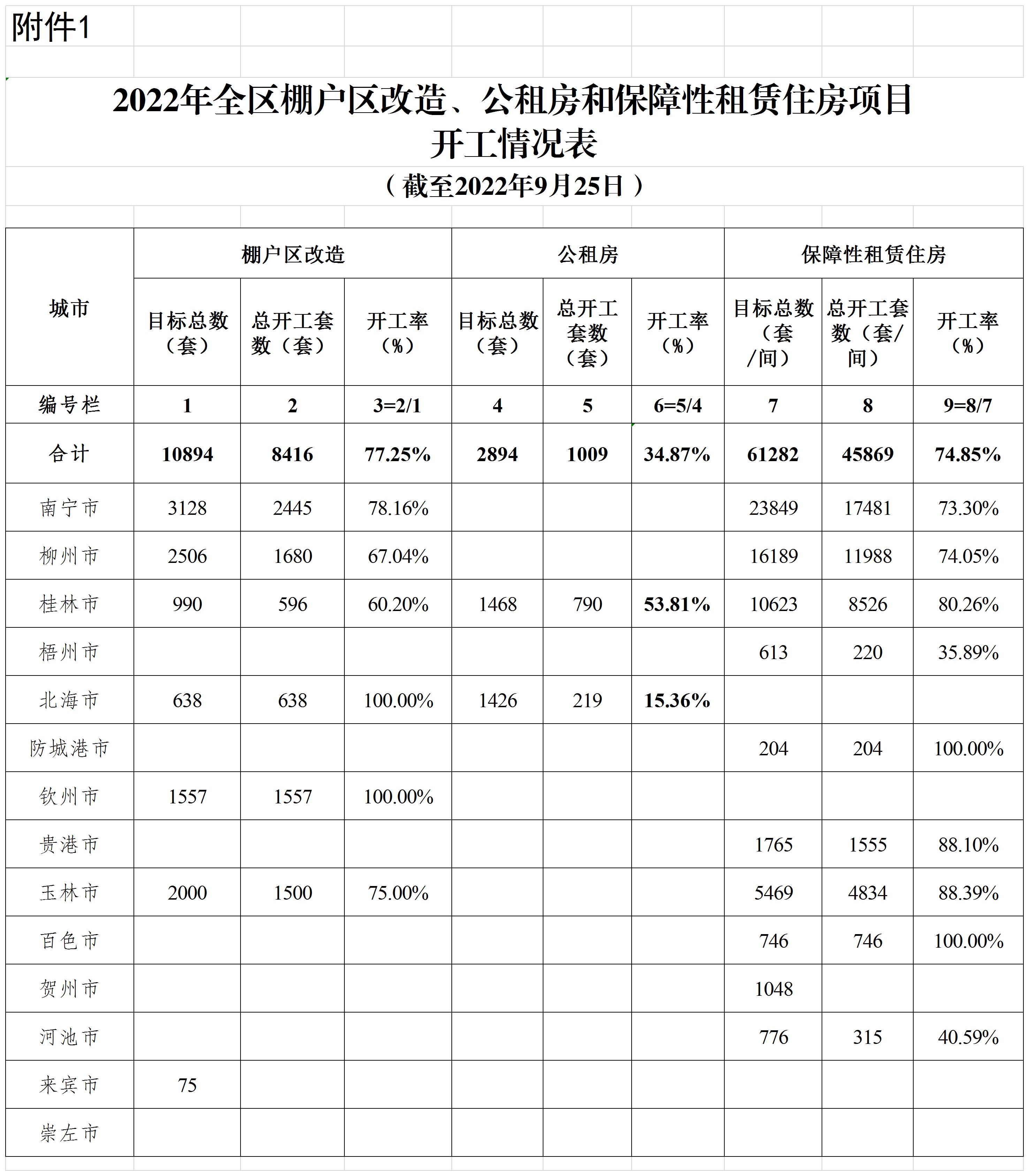 柳州自治区住建厅关于2022年1-9月全区保障性安居工程进展情况的通报