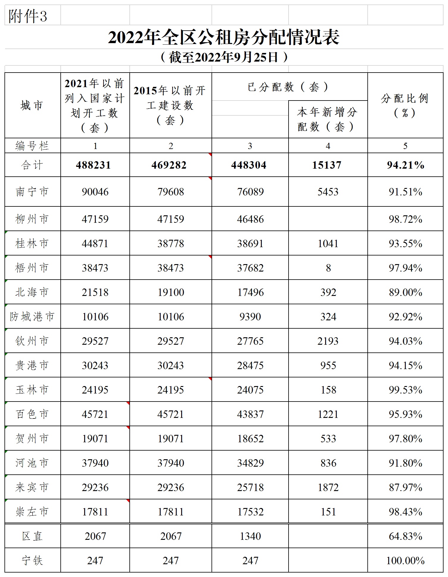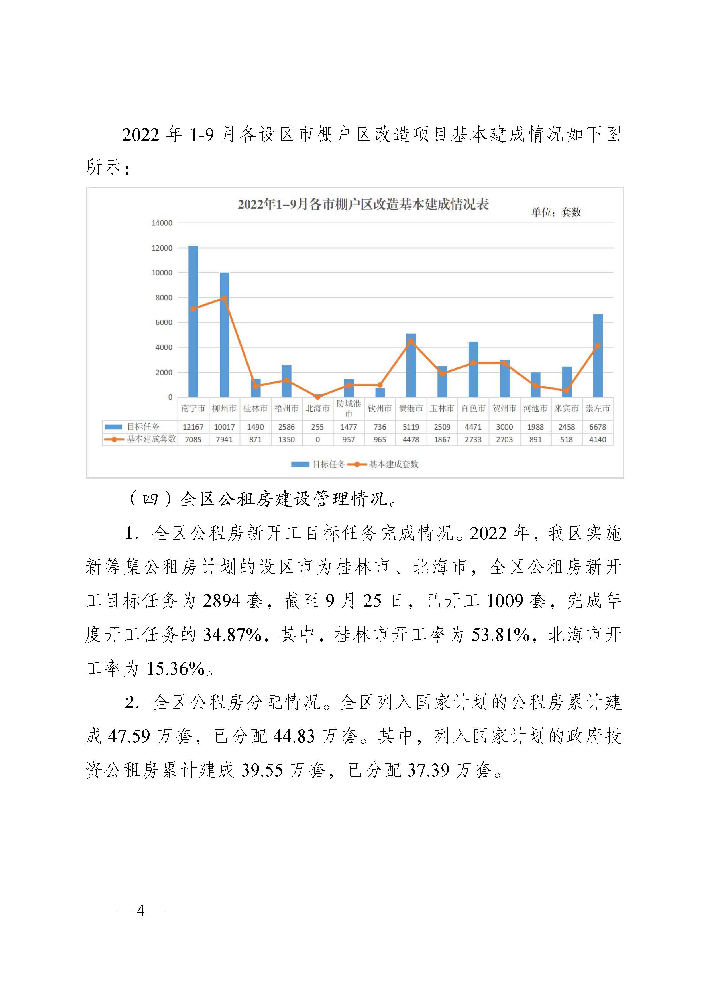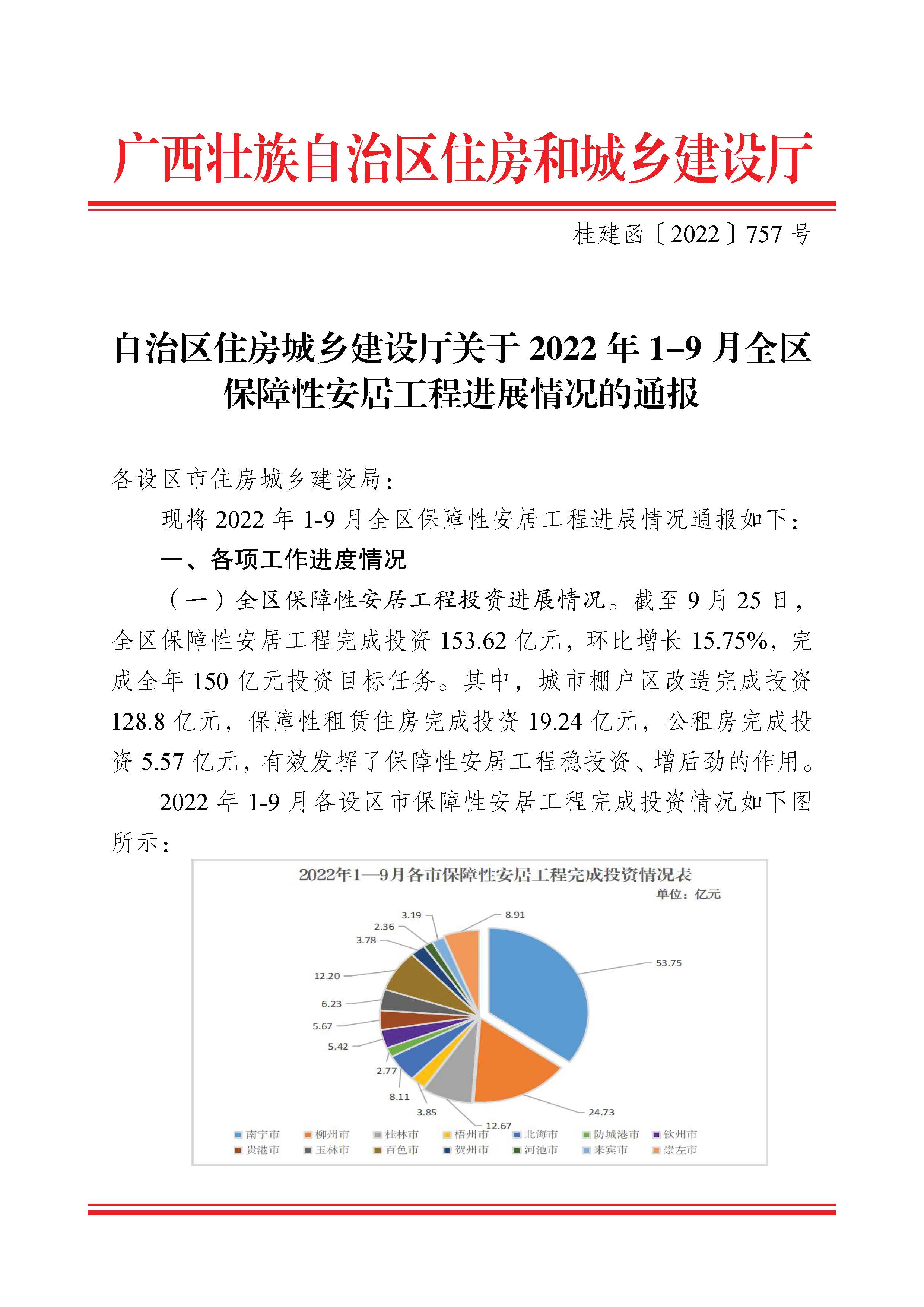 柳州自治区住建厅关于2022年1-9月全区保障性安居工程进展情况的通报