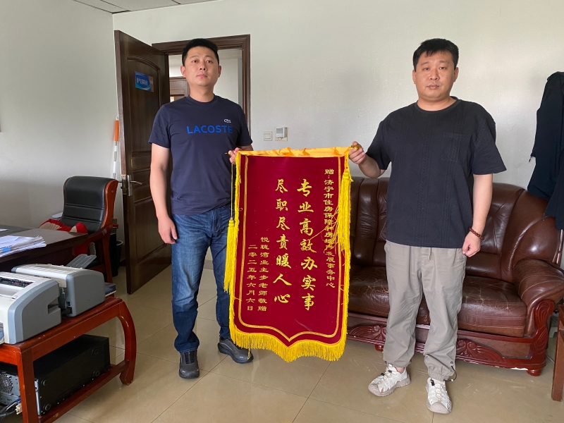 高效优质的服务不仅体现在政策宣讲中,更贯穿于日常业务办理全过程。近日,任城区悦珑湾小区业主步先生专程送来“专业高效办实事 尽职尽责暖人心”锦旗,对工作人员在商品房网签备案过程中展现的专业素养和服务温度表示衷心感谢。“从材料准备到流程指导,工作人员全程耐心细致,让我们真切感受到了住建速度和住建温度。”步先生动情地说。